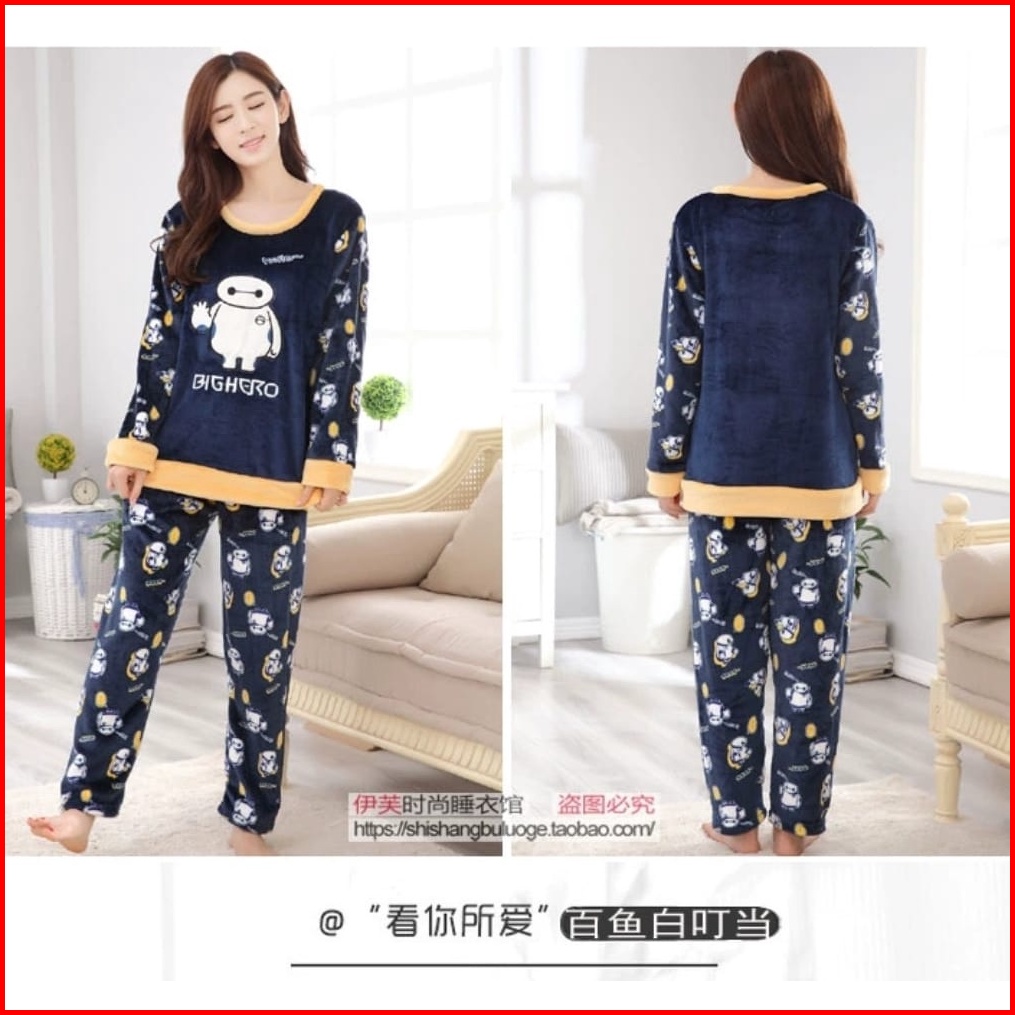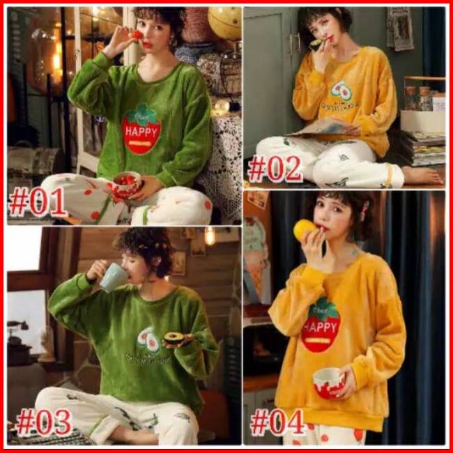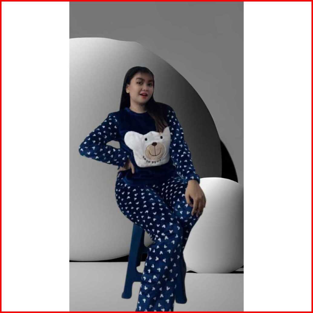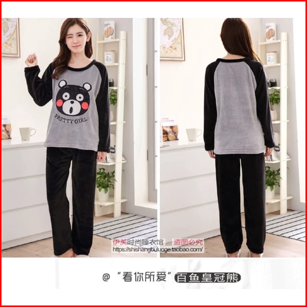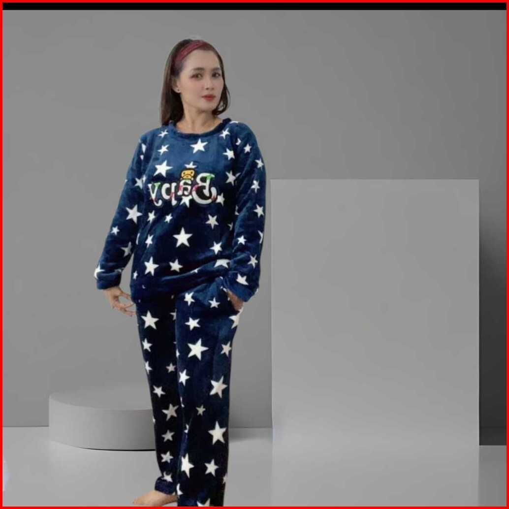 Setelan Piyama Baju Tidur Wanita Bahan Bludru Import