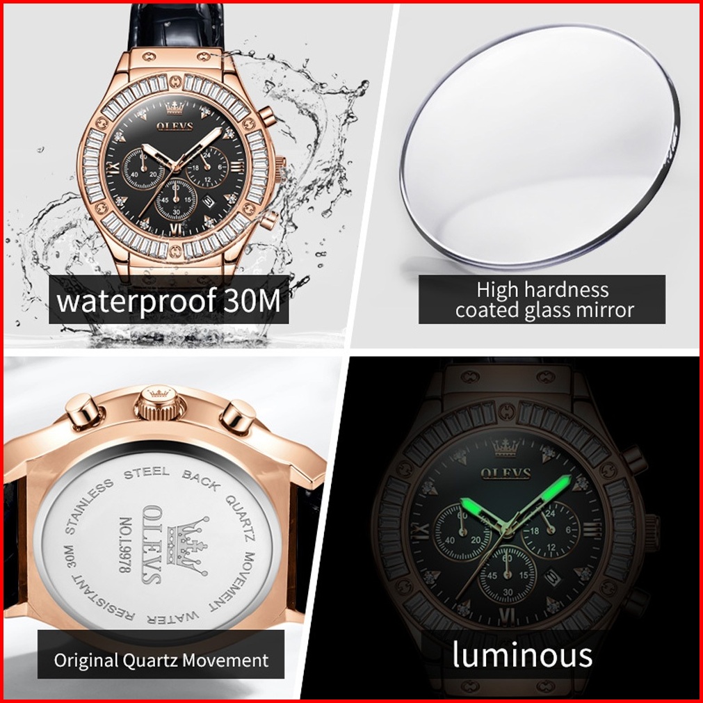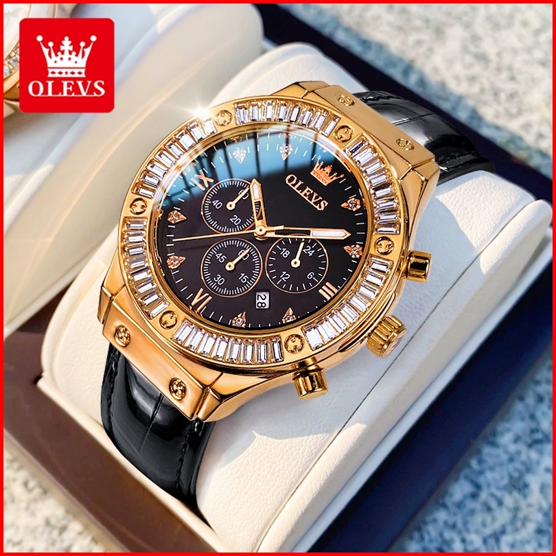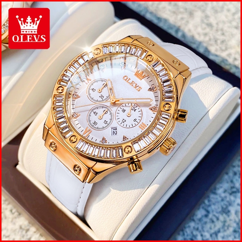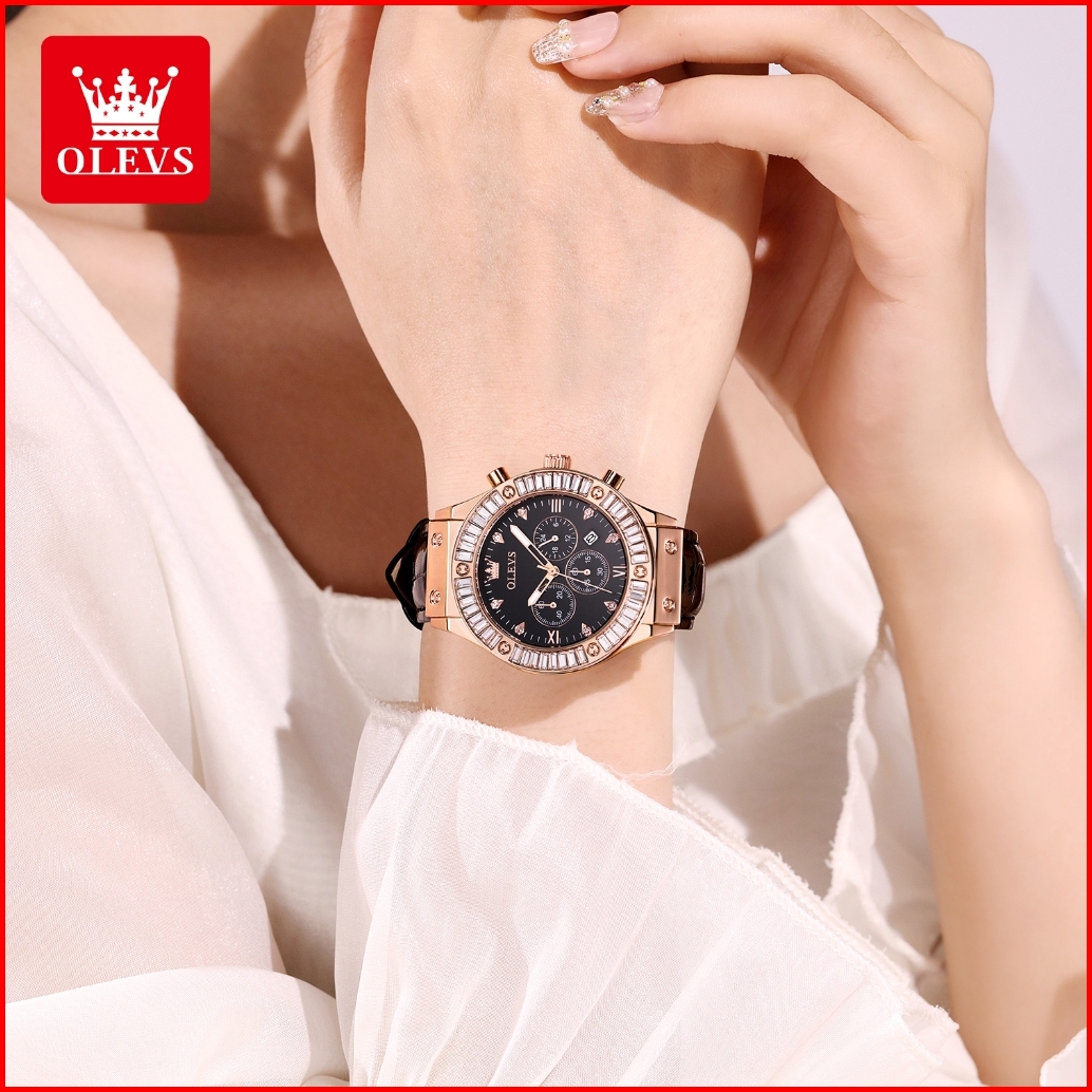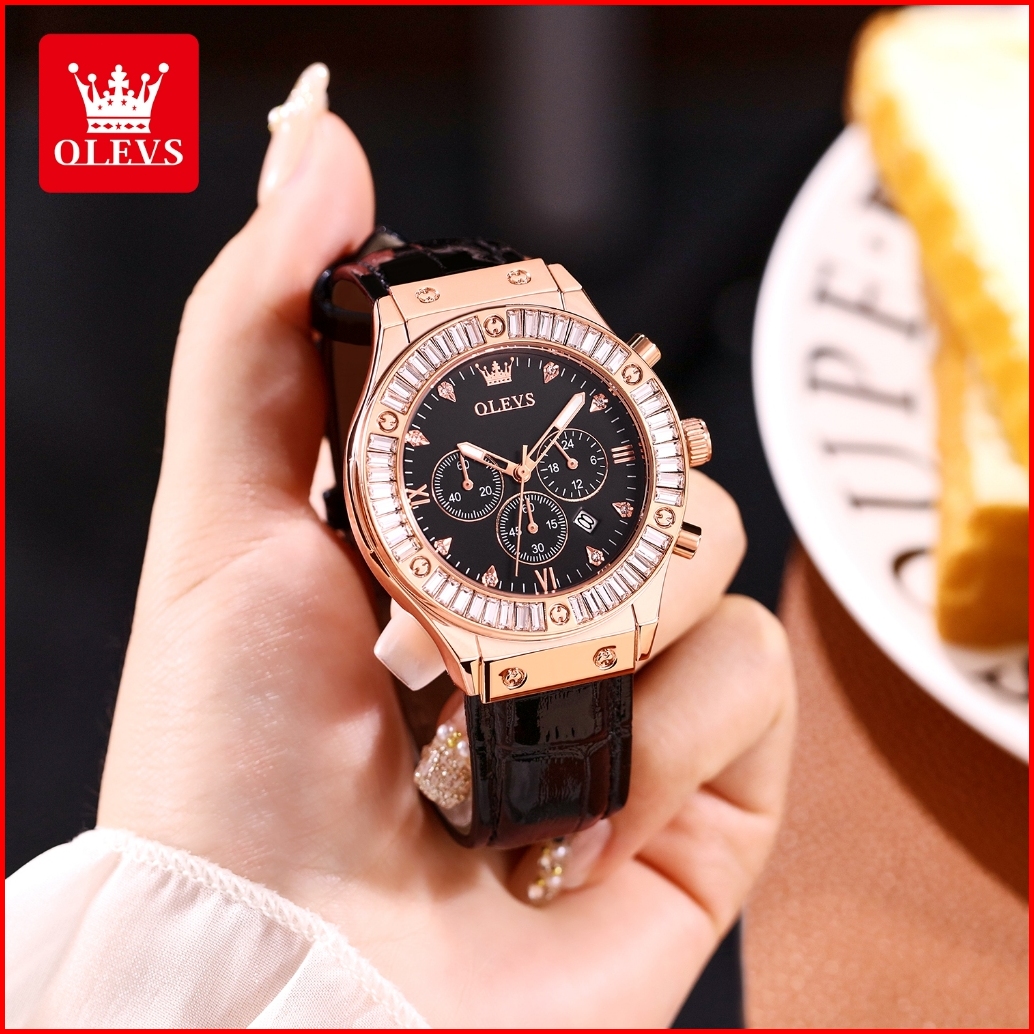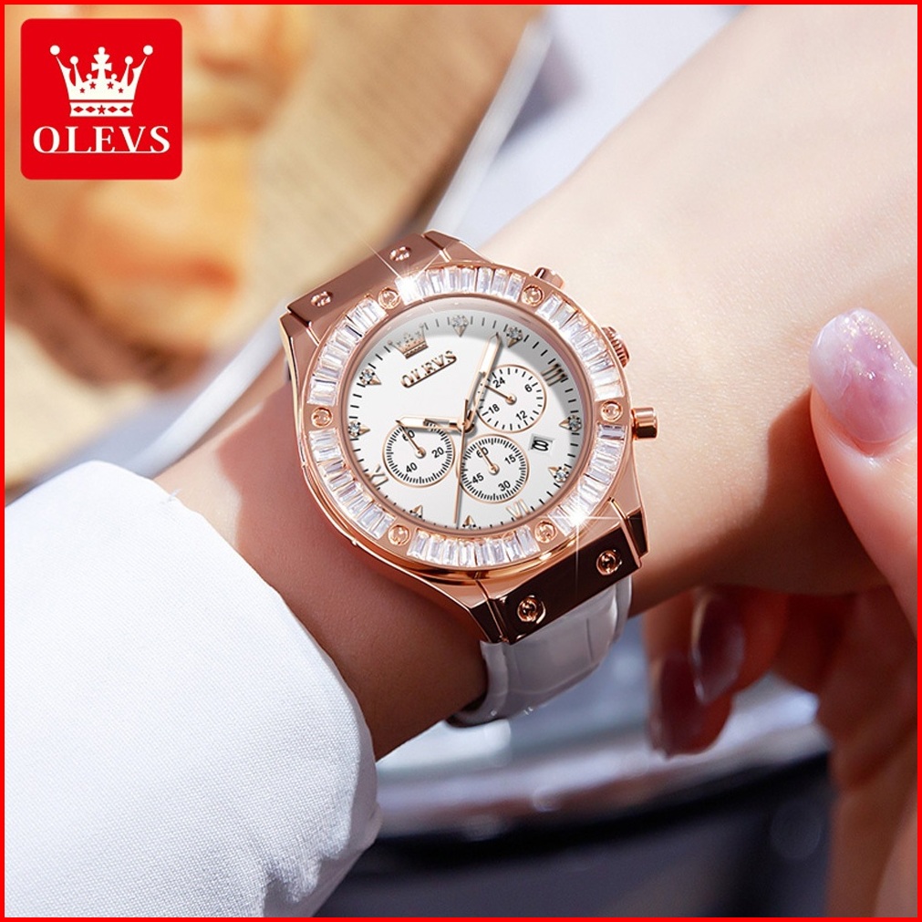 Olevs Jam Tangan Wanita Anti Air Original Kulit Kalender Analog Terbaru 2025 Rose Model 9978