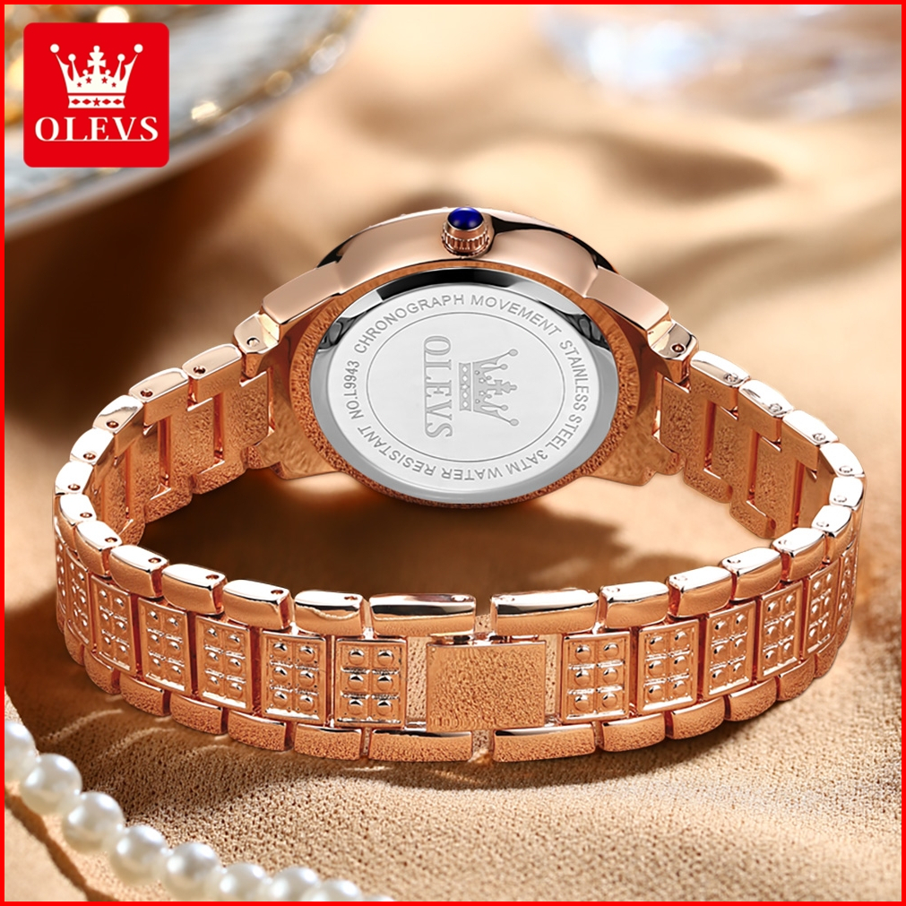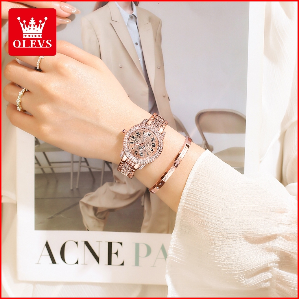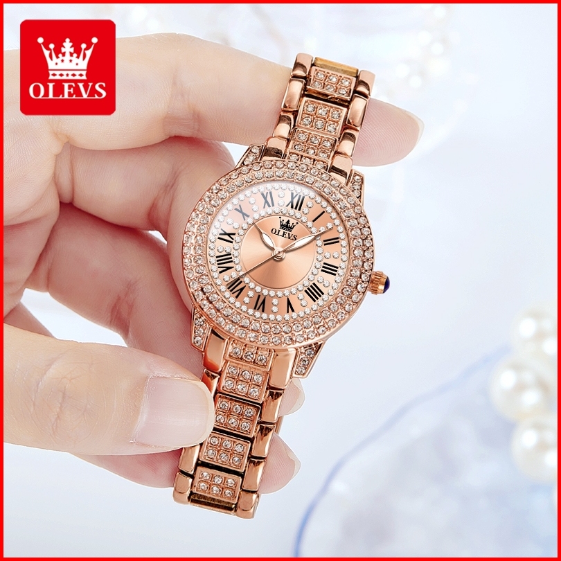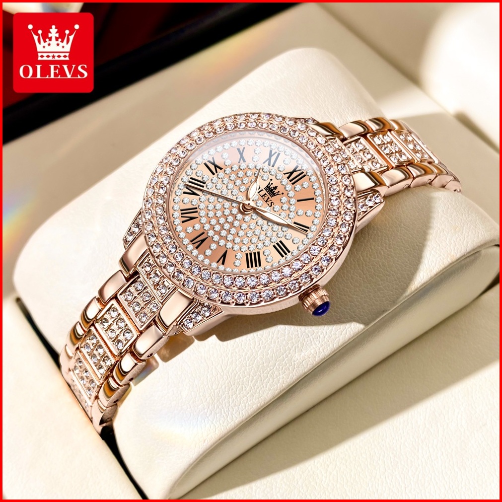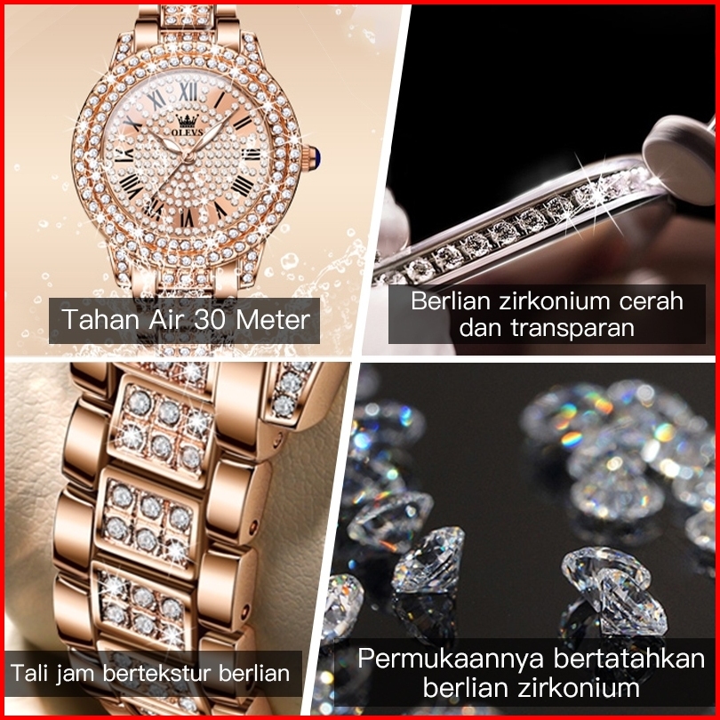 Olevs Jam Tangan Wanita Anti Air Original Mewah Elegan Diamond Dial Analog Tahan Air Rose Luminous Roman Scale Cewek Wat