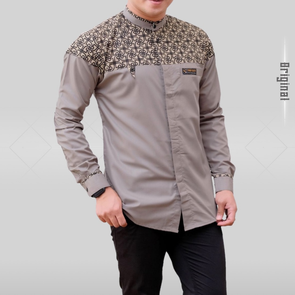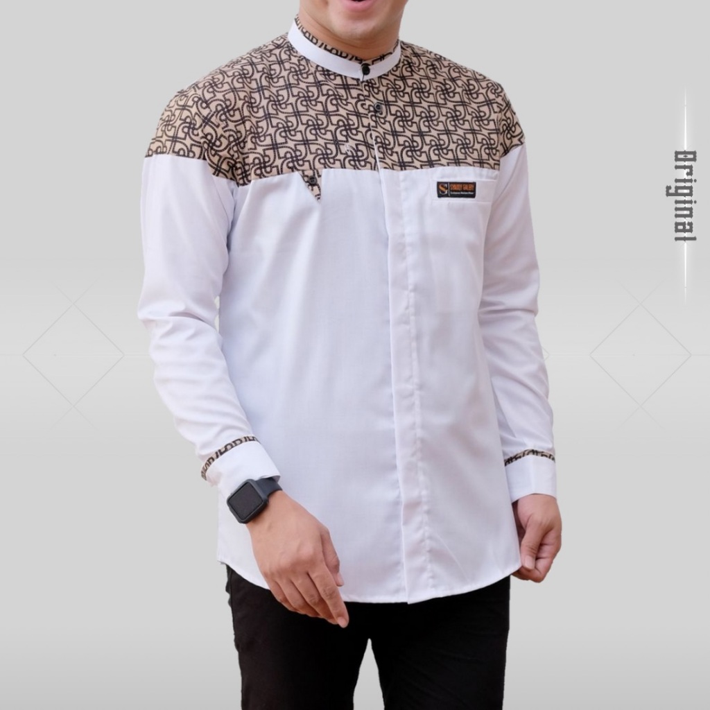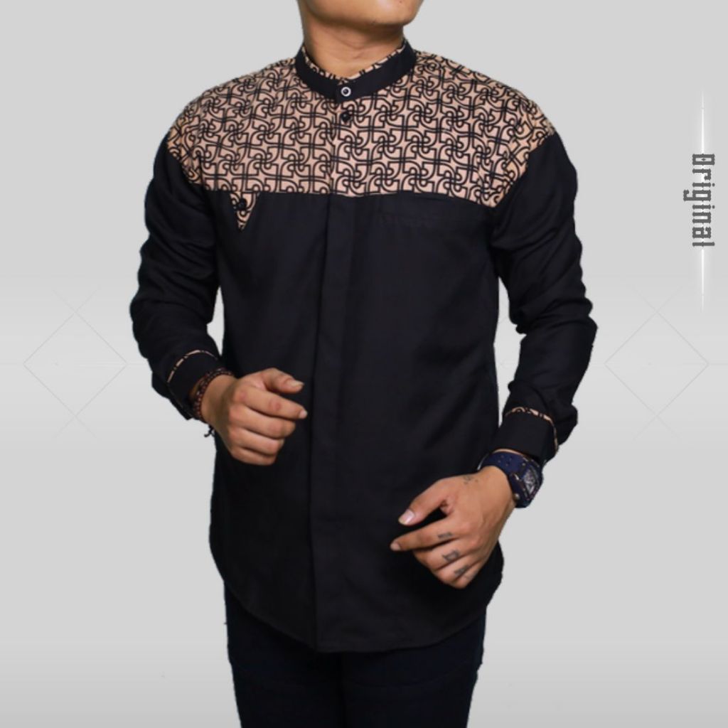 FREE ONGKIR BAJU KOKO PRIA LENGAN PANJANG KOMBINASI BATIK BAHAN KATUN TOYOBO PREMIUM UKURAN M L XL XXL
