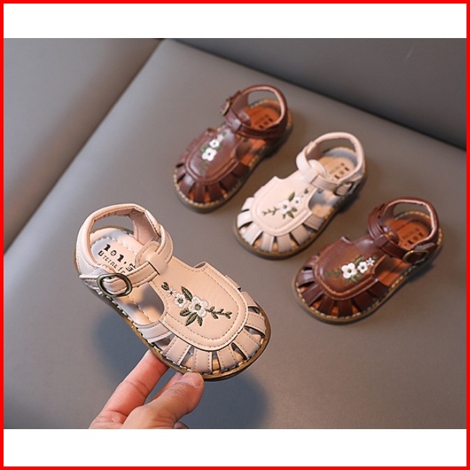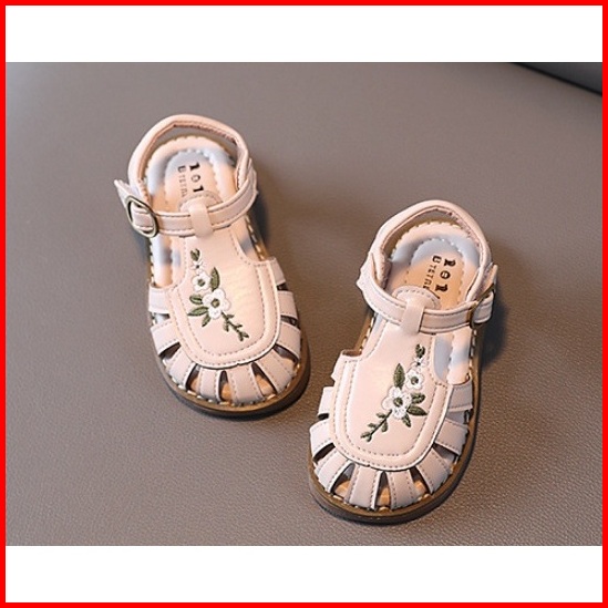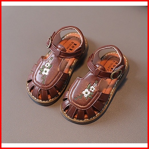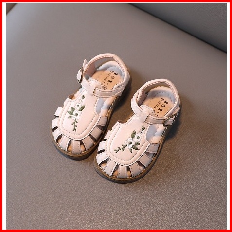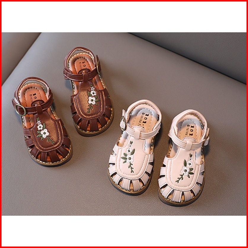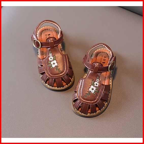 611 Sandal Bayi Perempuan Anti Benturan Sepatu Flat Lembut Anak Antik Bunga Ukuran 21-30
