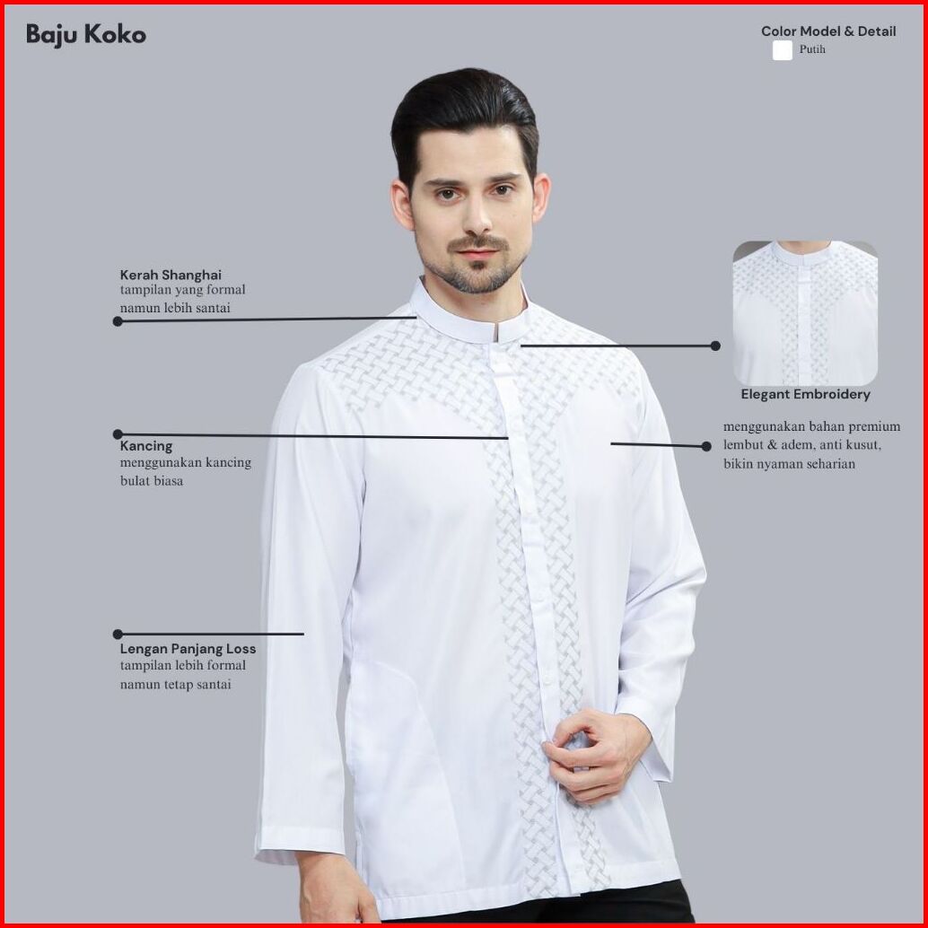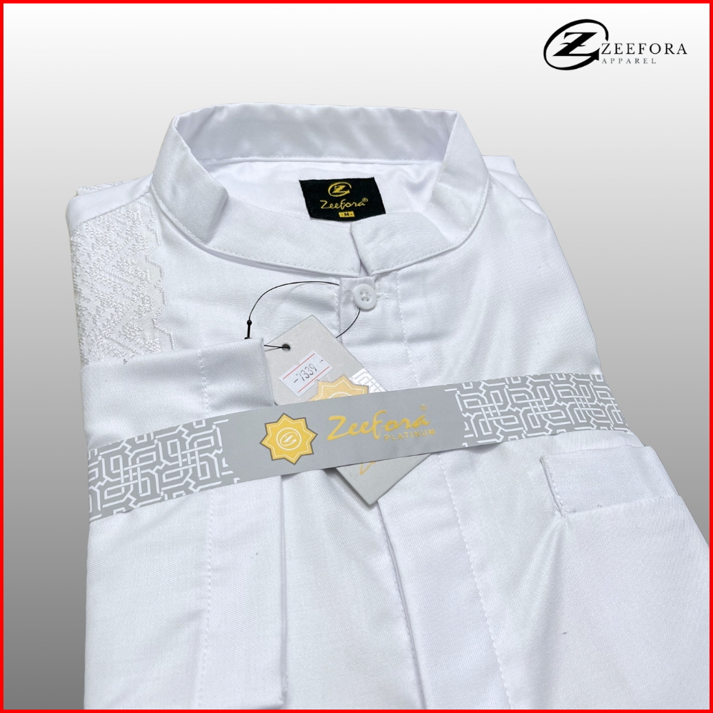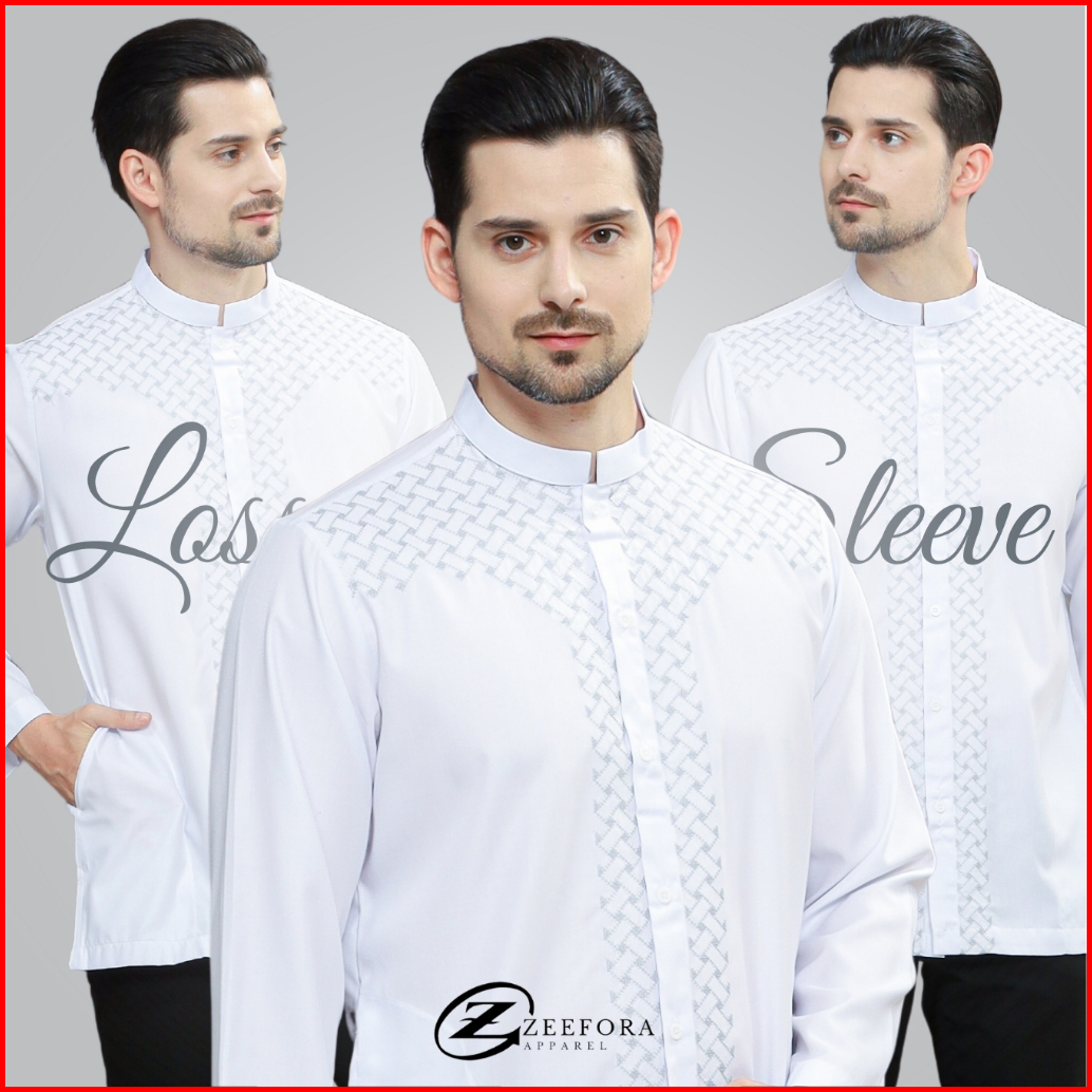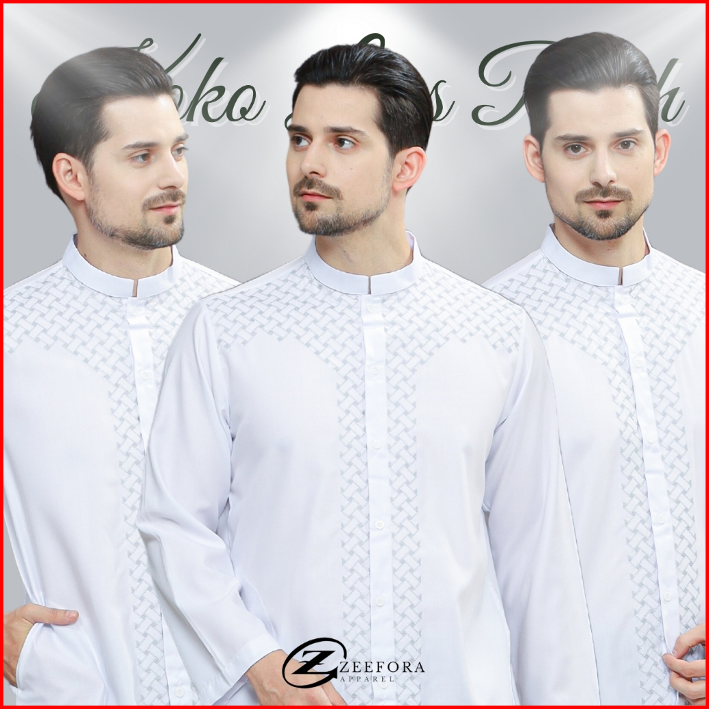 Zeefora Koko Putih Baju Muslim Basic Pakaian Pria Dewasa Bordir Lengan Panjang Loss Berkualitas
