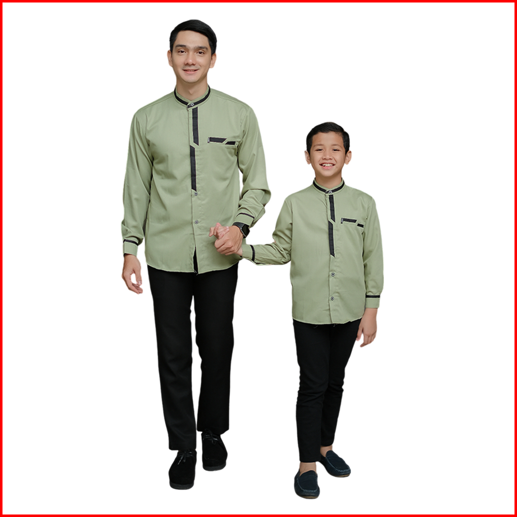 Bars Cloth.co Baju Koko Couple Ayah Dan Anak Laki Laki Lengan Panjang Kemeja Muslim Pria Toyobo