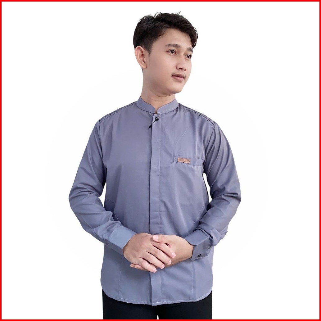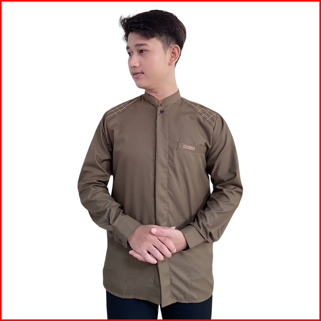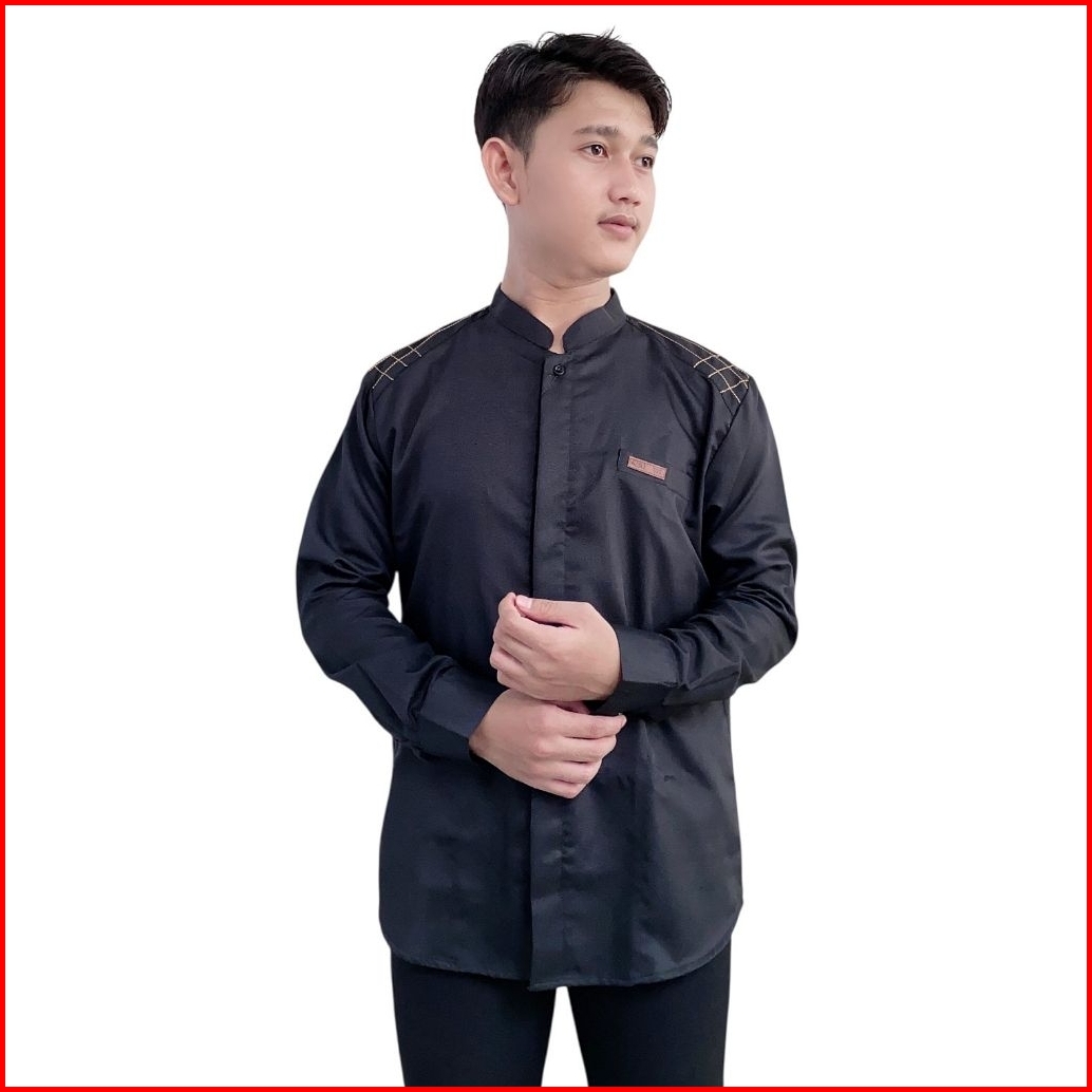 Baju Koko Pria Lengan Panjang Motif Rubi Warna Hitam