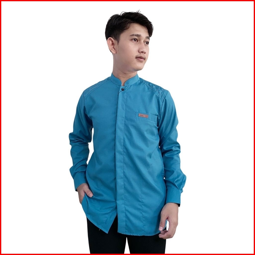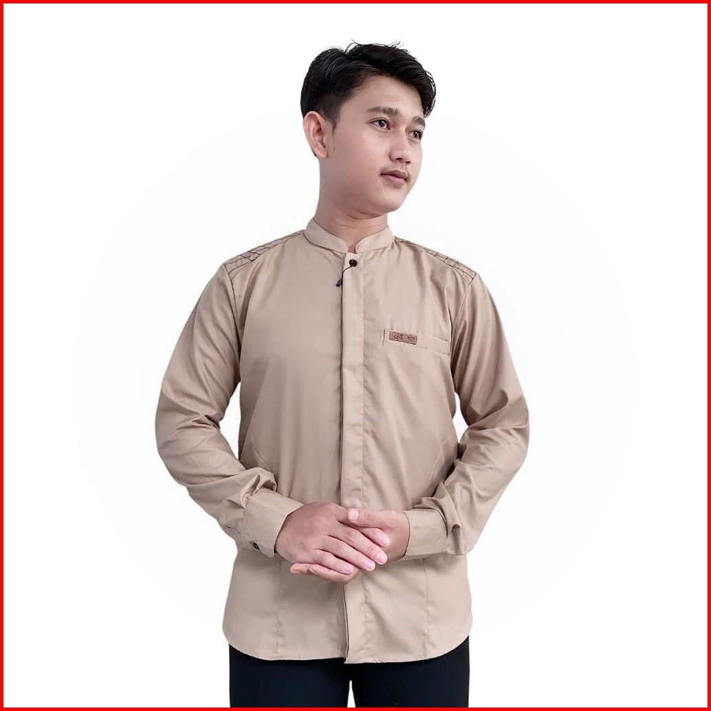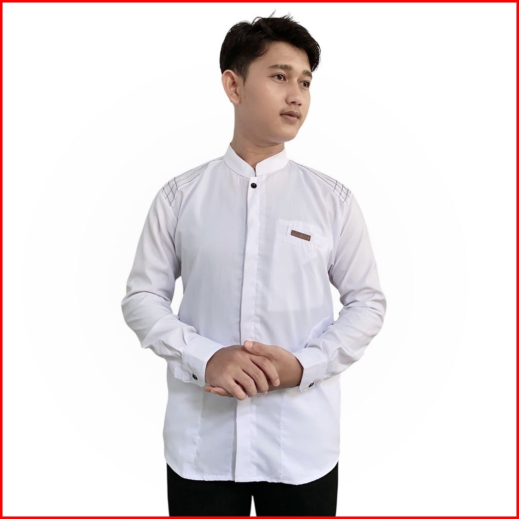Baju Koko Pria Lengan Panjang Motif Rubi Warna Hitam