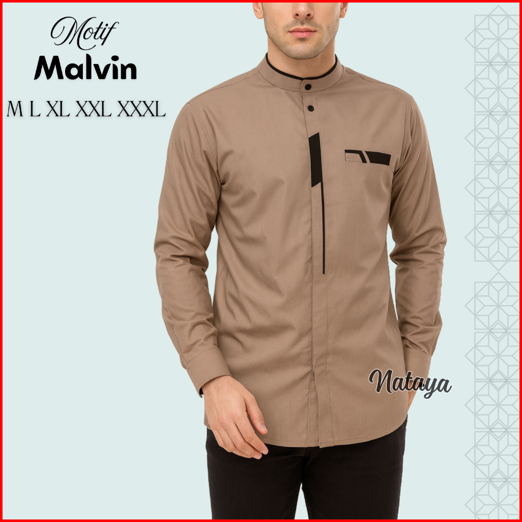 Baju Koko Pria Baju Koko Lengan Panjang Motif Malvin Bahan Katun Toyobo Premium Adem Dan Nyaman Warna Abu Cokelat Putih