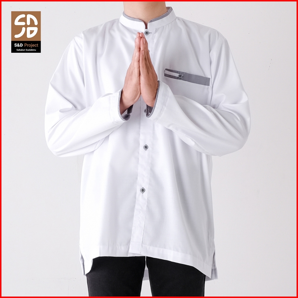 S D Project Baju Koko Katun Toyobo Polos Lengan Panjang Ukuran M L Xl - Warna Putih