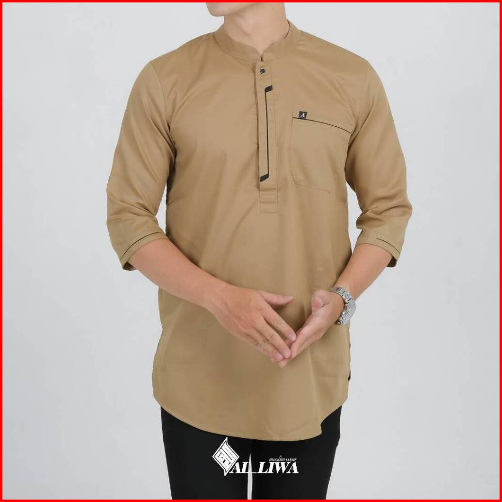 Baju Koko Kurta Pakistan Pakaian Muslim Pria Bahan Toyobo Warna Navy Hitam Olive Pink Abu Chocomilk