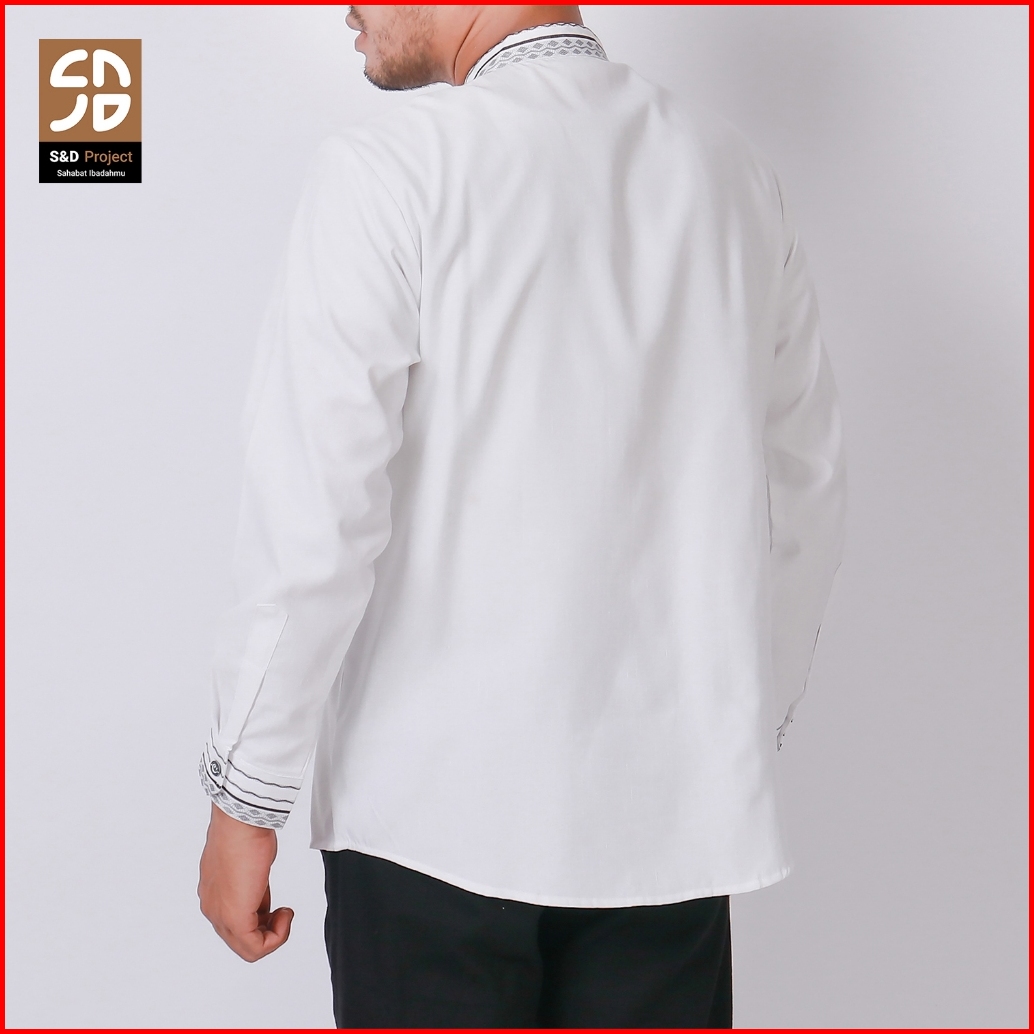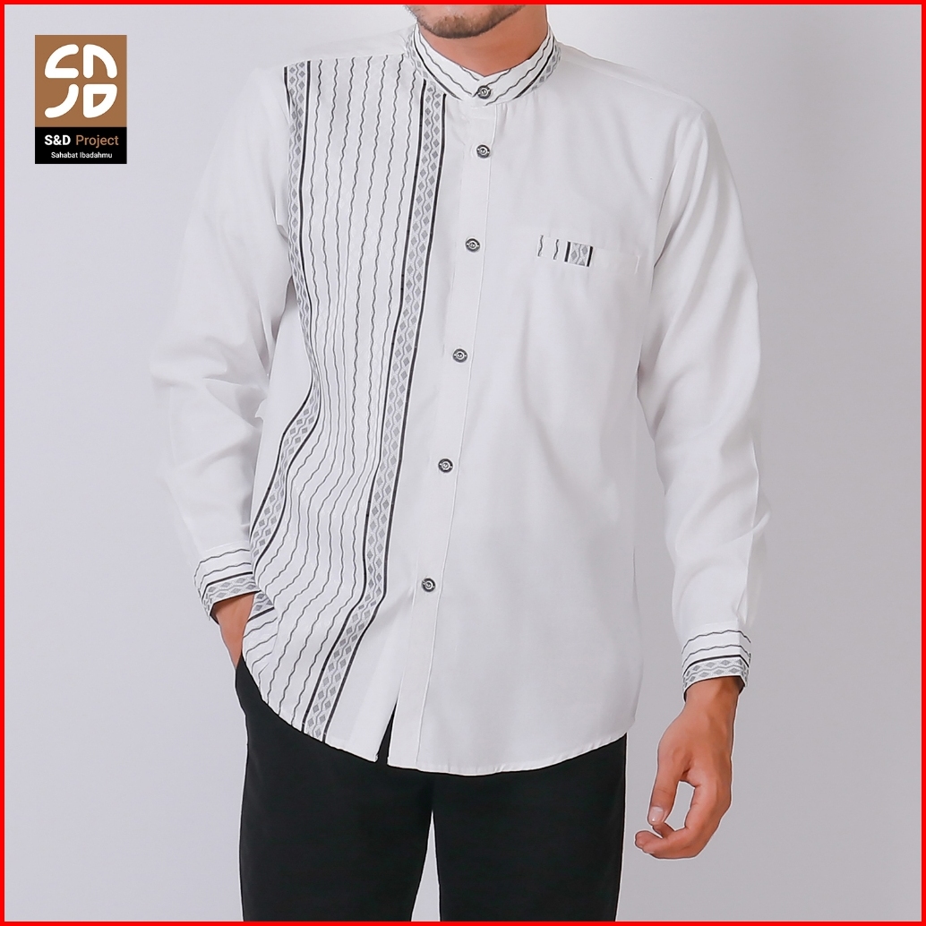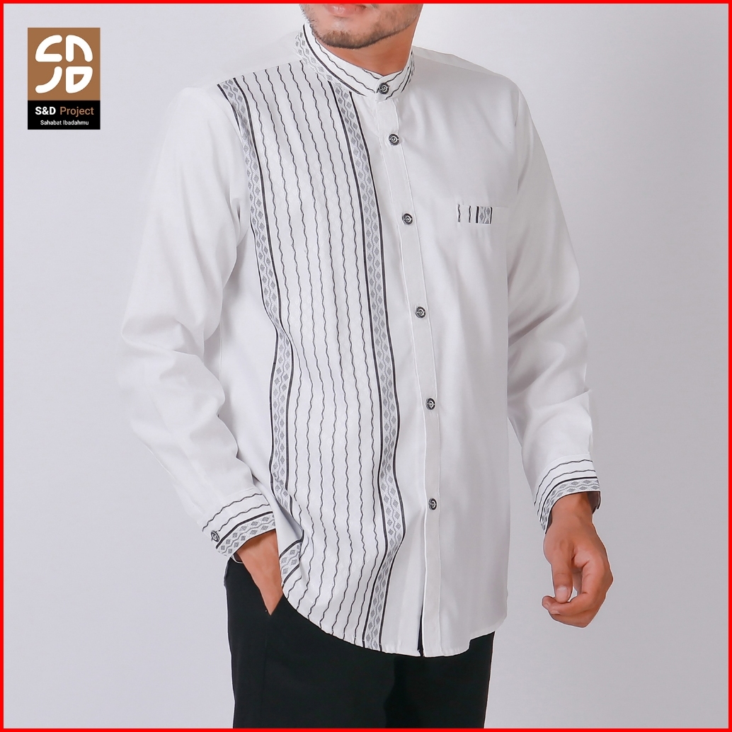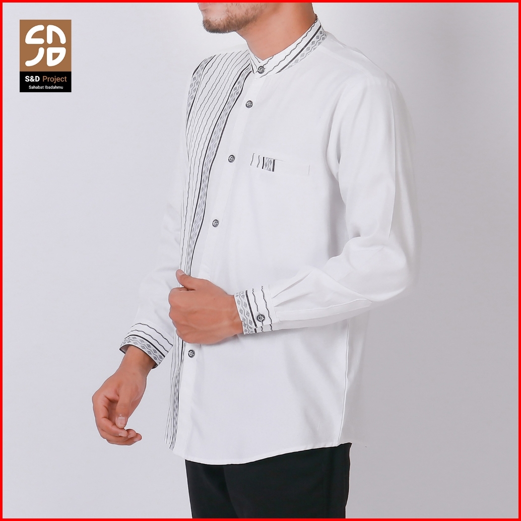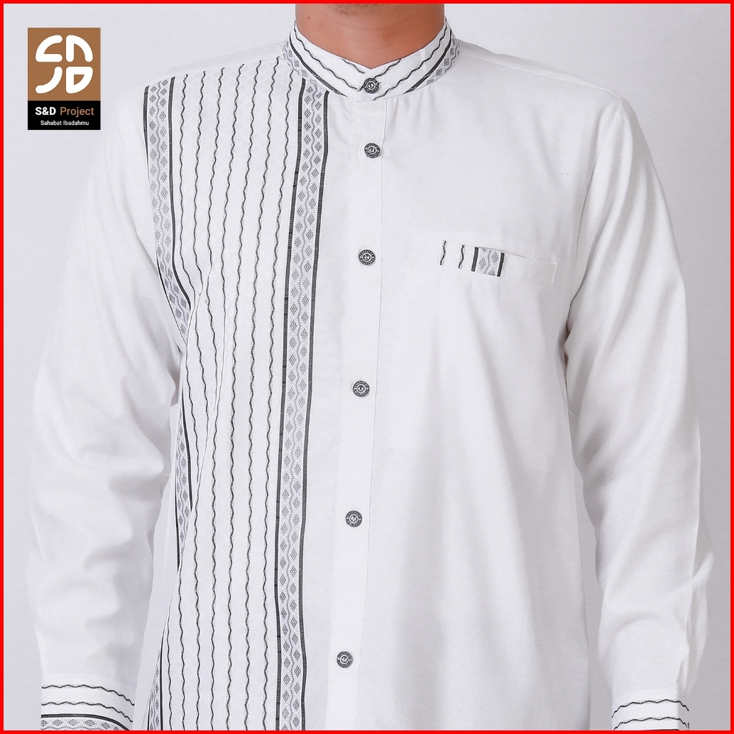 S D Project Baju Koko Tsaqif Lengan Panjang Bahan Katun Slup Motif Garis Ukuran M L Xl - Warna Putih