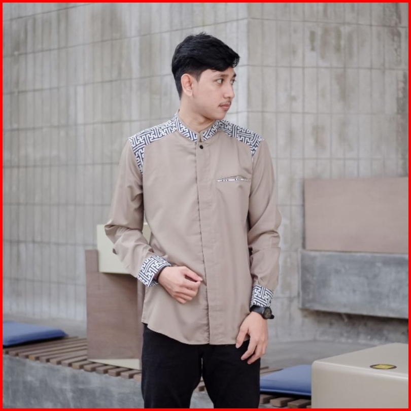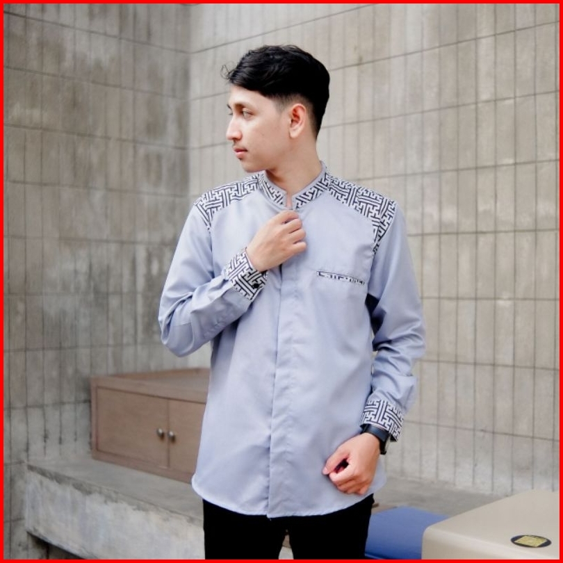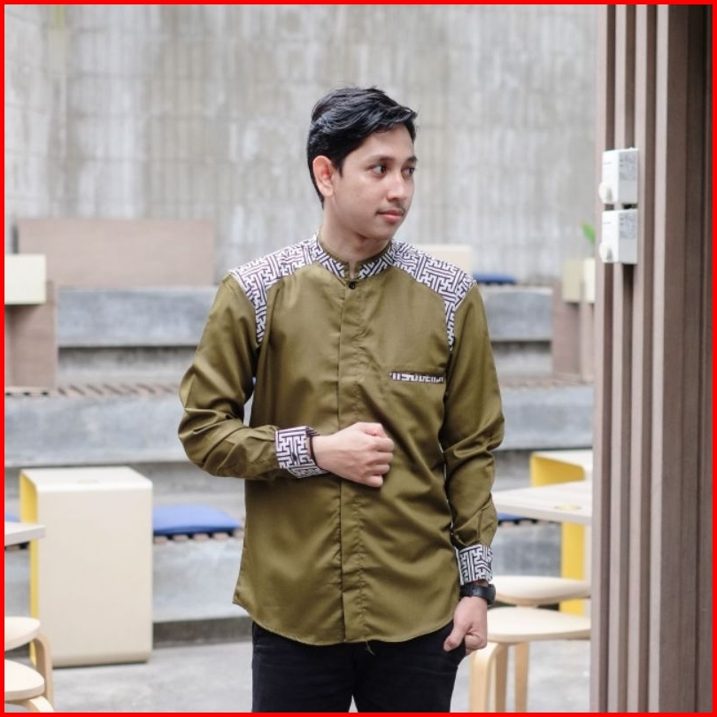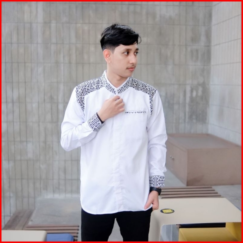 Baju Koko Lengan Panjang Kombinasi Batik Terbaru Original Elrumi Warna Putih Terlaris