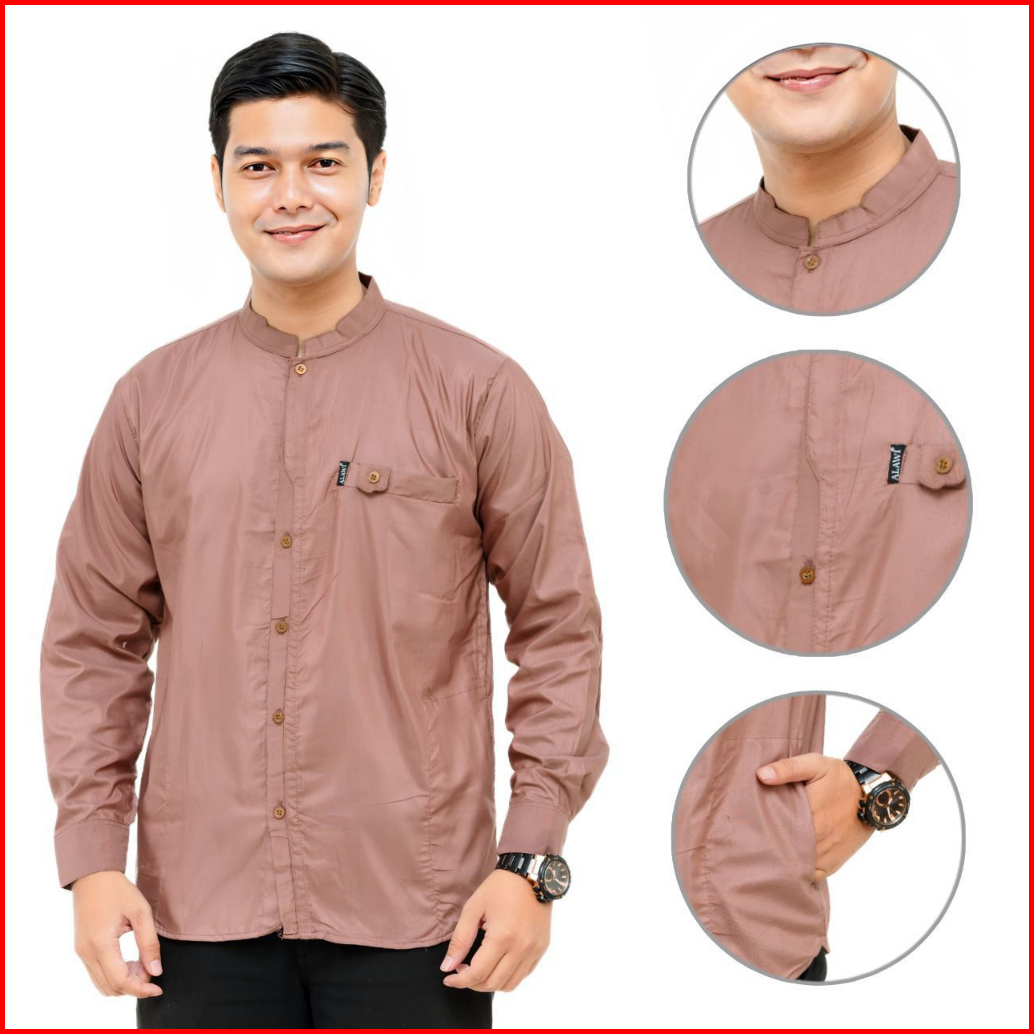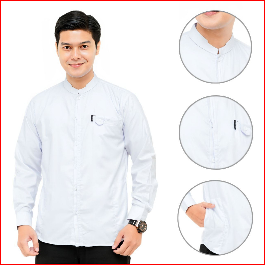 Kenzu - Baju Koko Pria Lengan Panjang Motif Albino Putih M - L - Xl