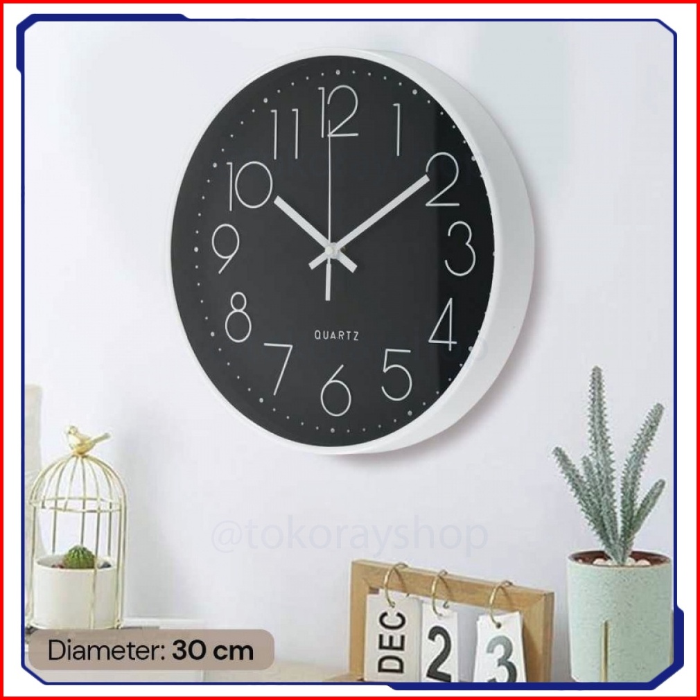 Jam Dinding Bulat Quartz Silent Movement Indoor Wall Clock Round Shape 30cm - Ms30