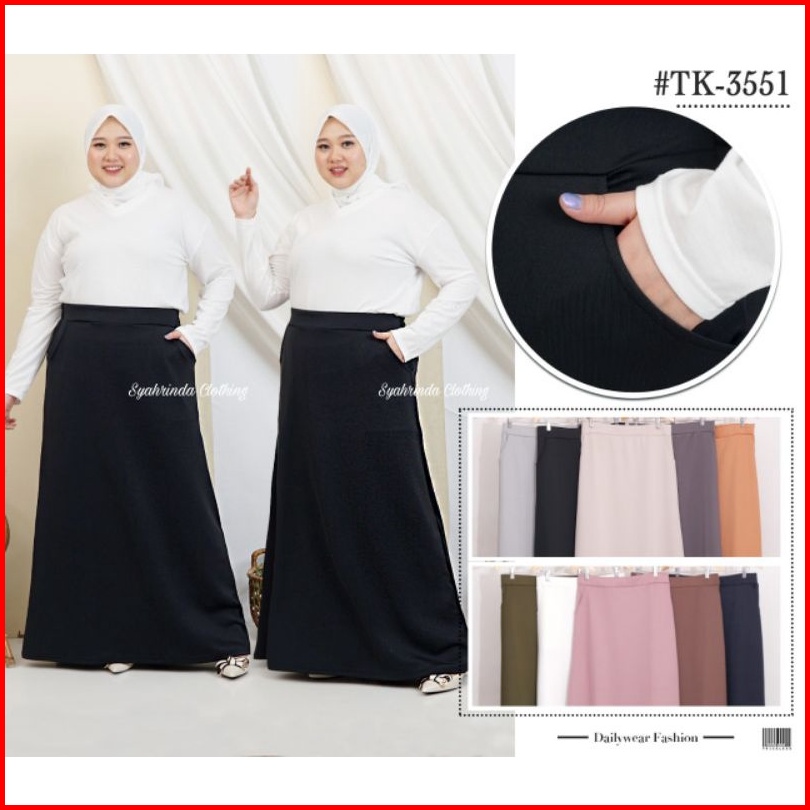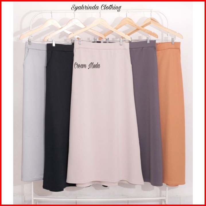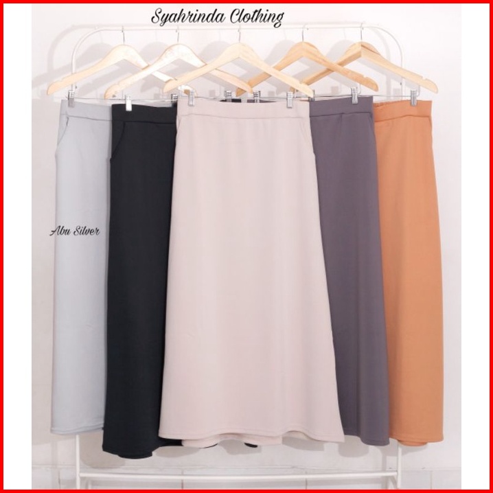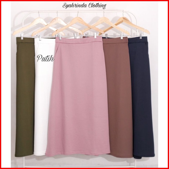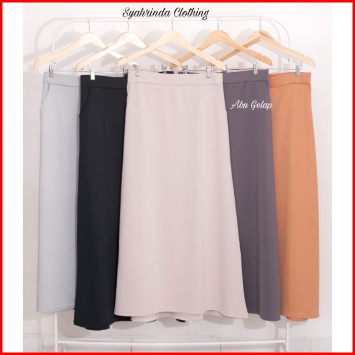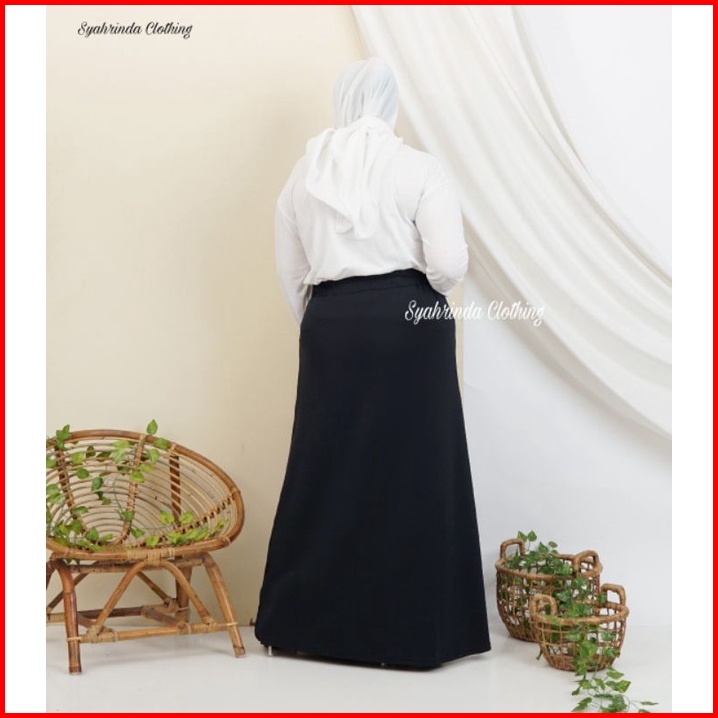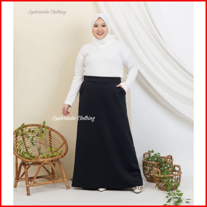 Rok Kerja Jumbo Span A Line Bawahan Wanita Scuba Premium Panjang Polos Kantor Warna Hitam