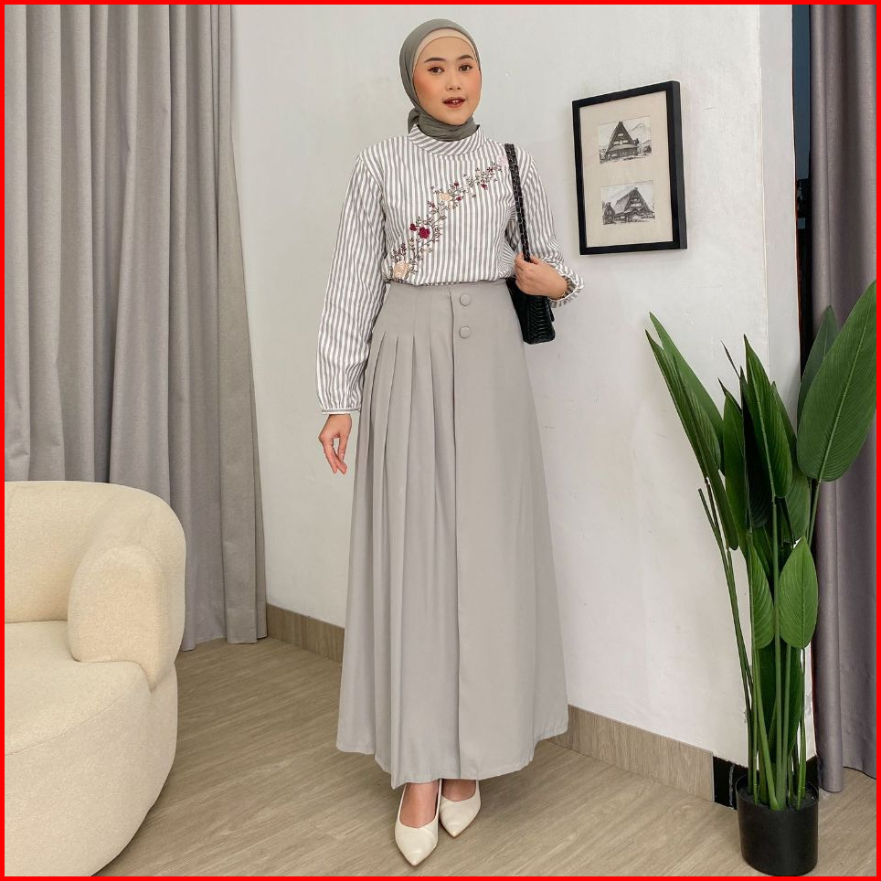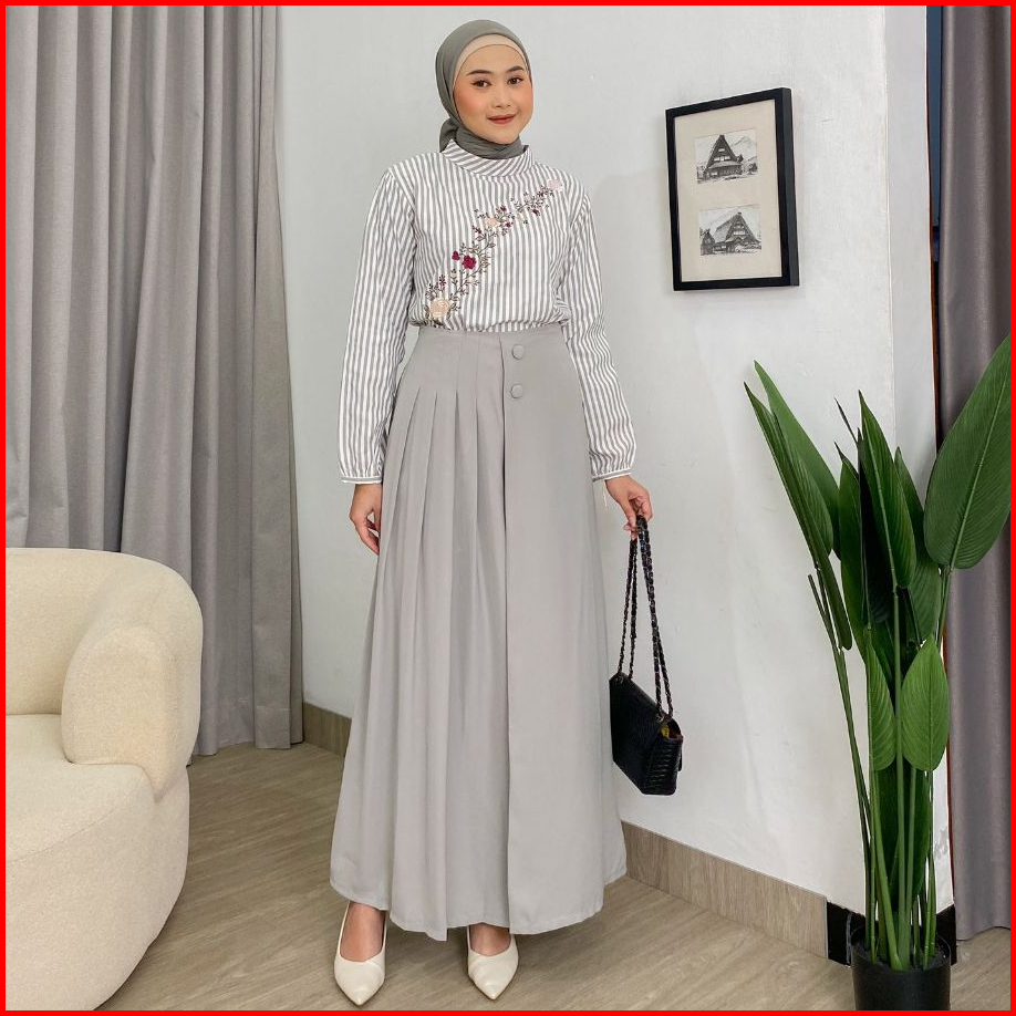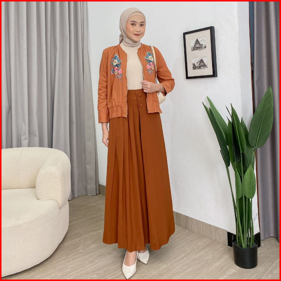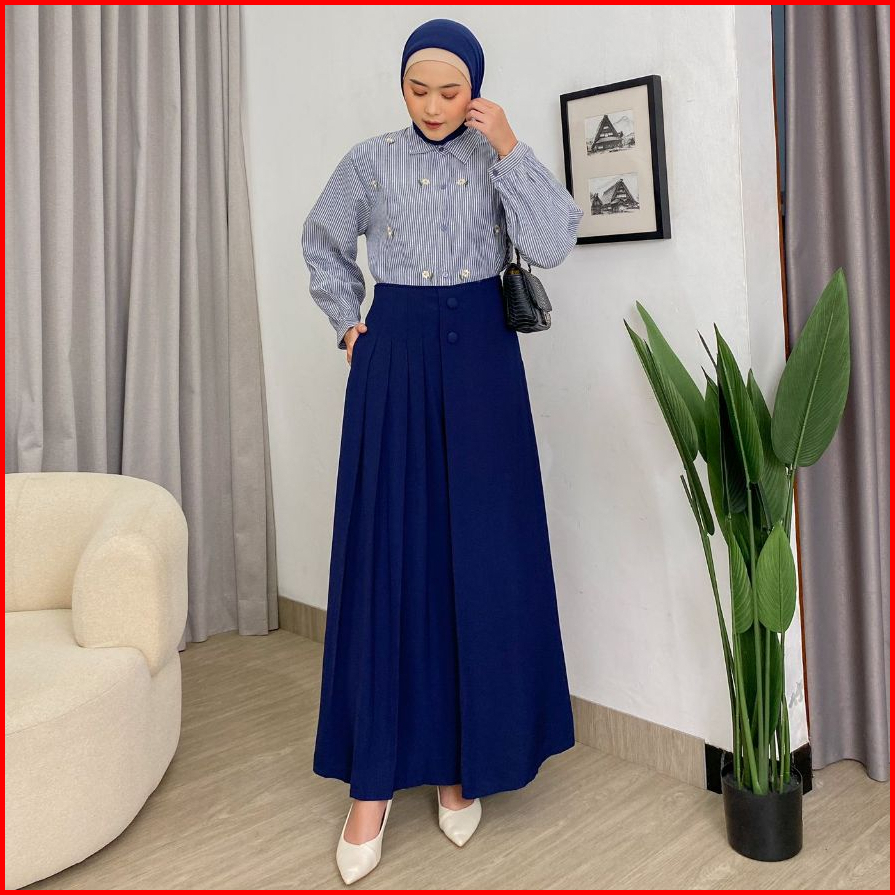 Dostifashion Safa Kulot Kulot Rok Wanita Model Lebar Rempel Depan Kancing Bahan Torino