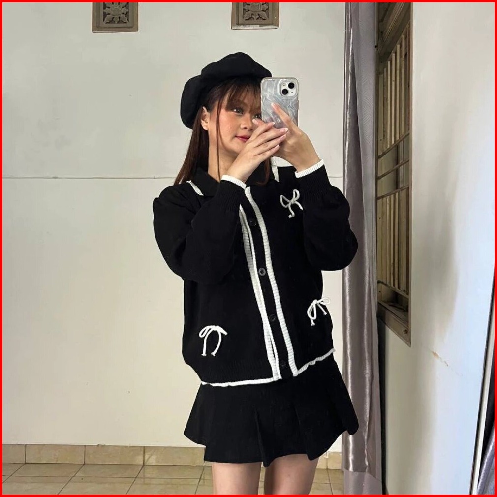 Keiko Cardigan Knit Coquette Rebecca Cardigan Pita Conquette Rahelia Atasan Polo Kancing Cardigan Rajut Wanita