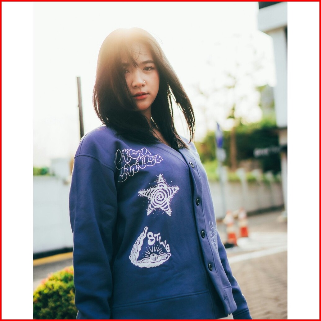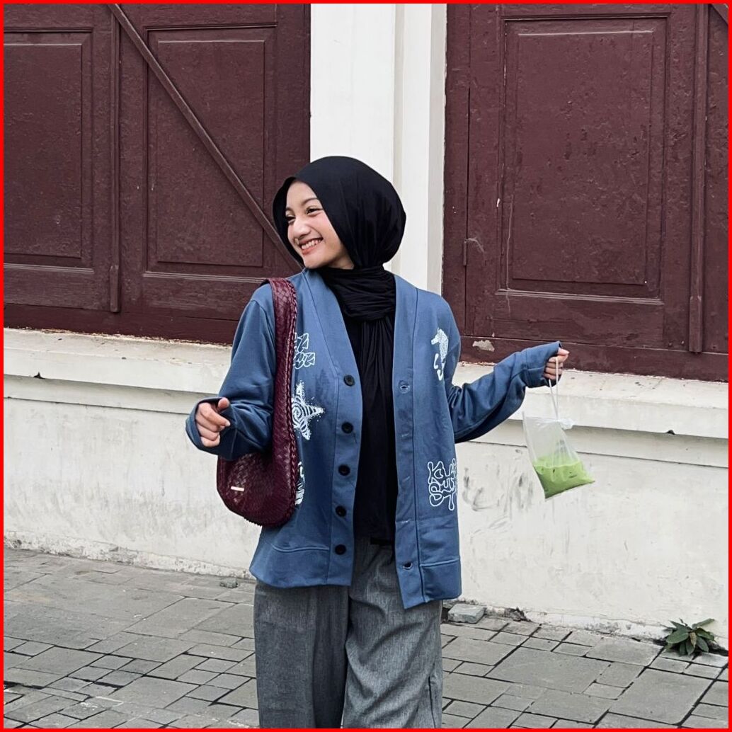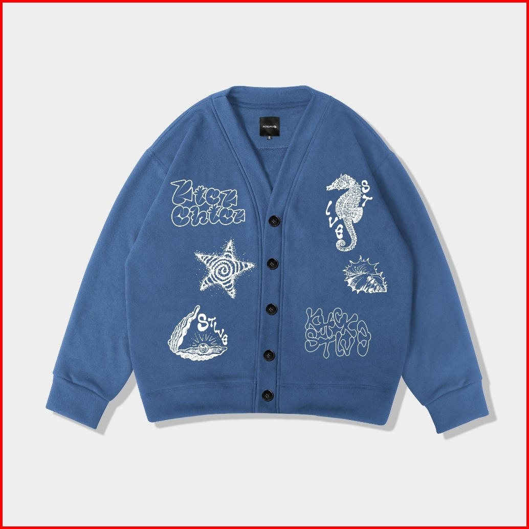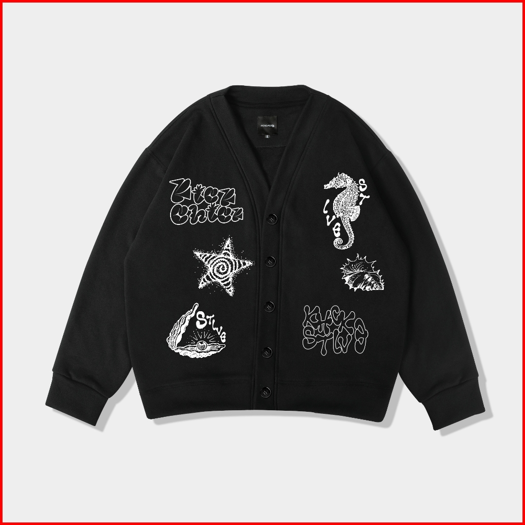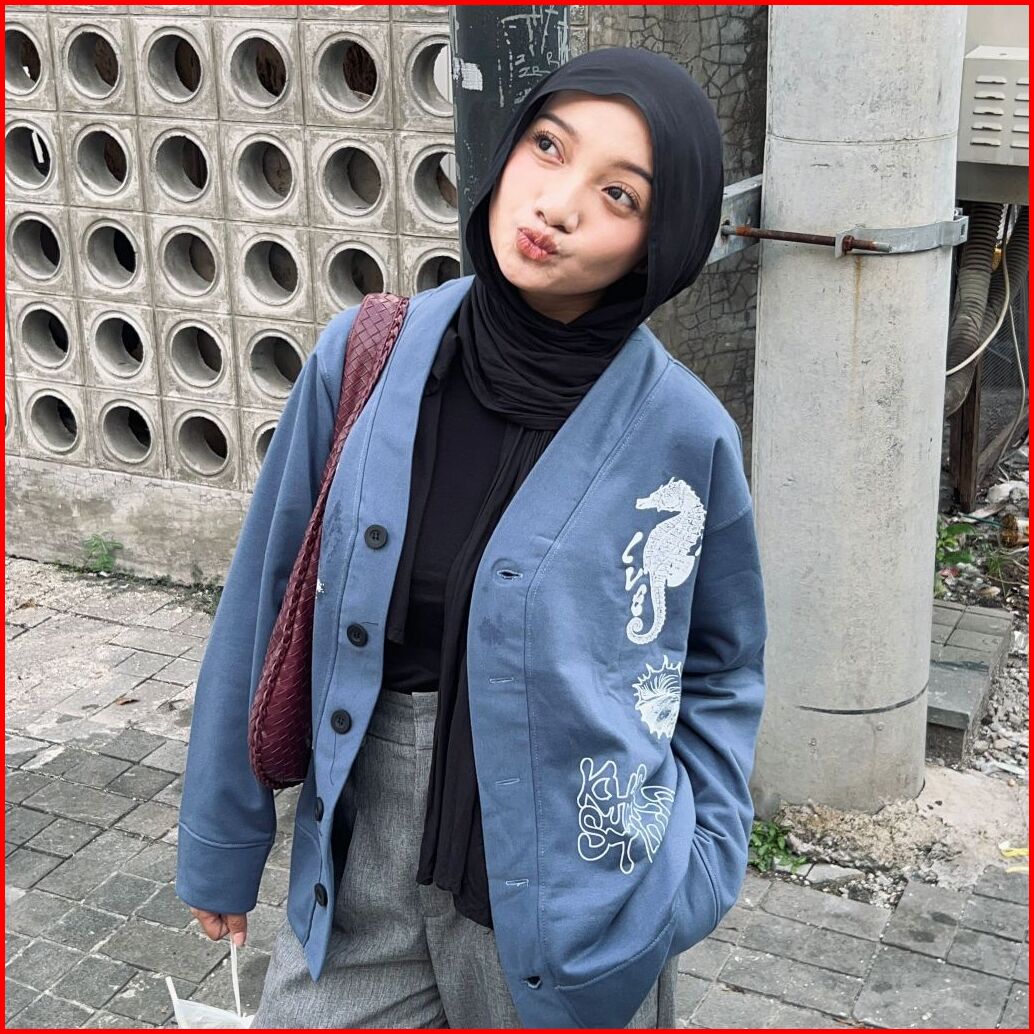 Kickchick Cardigan Sea Fauna Black Steel Blue Oversize Outer Lengan Panjang Kccg002