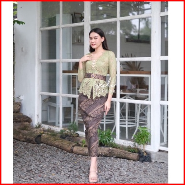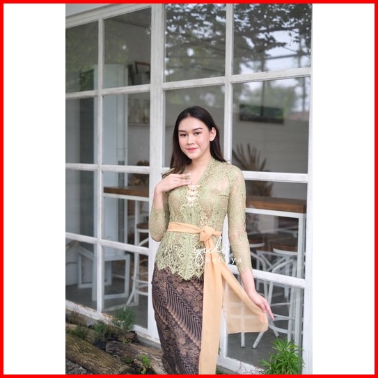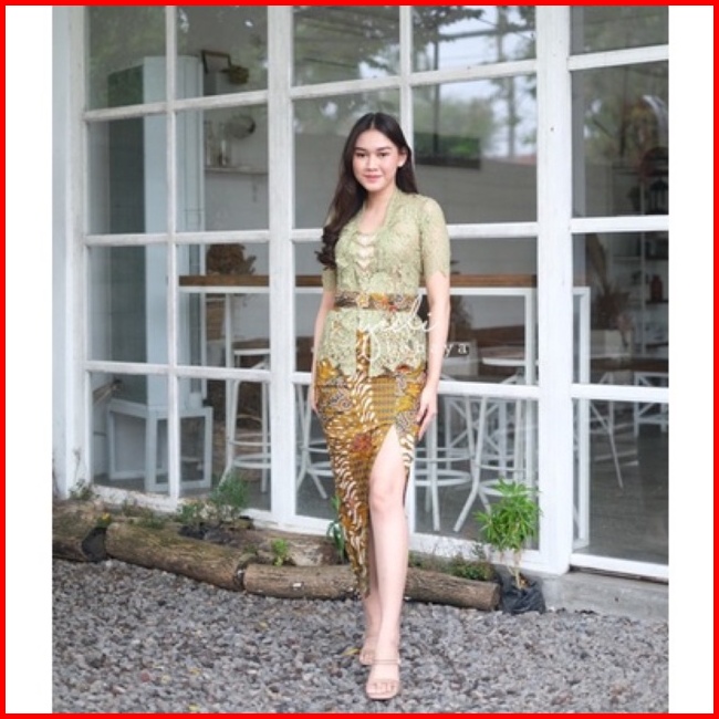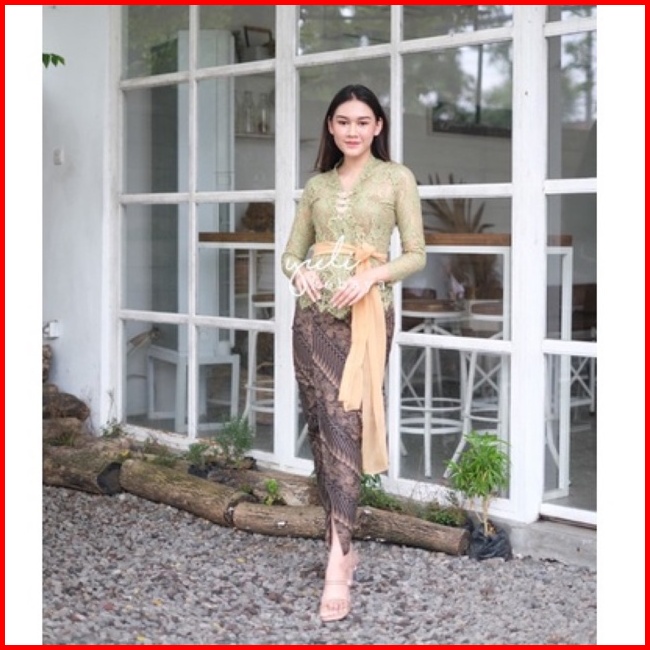 Set Kebaya Semi Italy Special Sage Green Kebaya Kondangan Wisuda