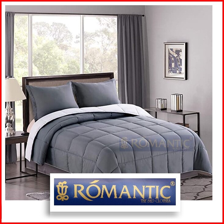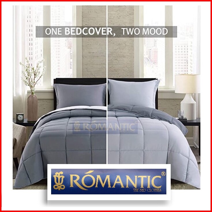 Two Tone Bedcover Sprei Set By Romantic Katun Jepang Adem Bahan Halus Abu Tua Muda Minimalis