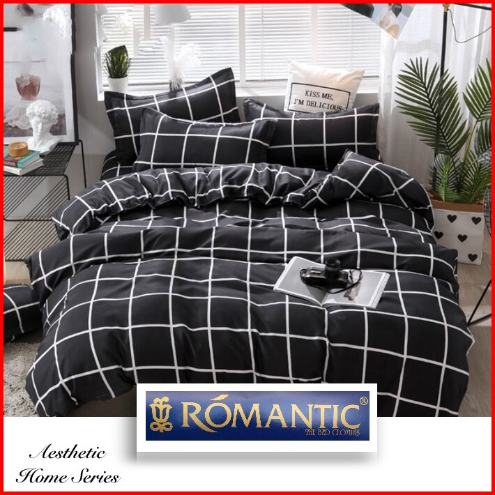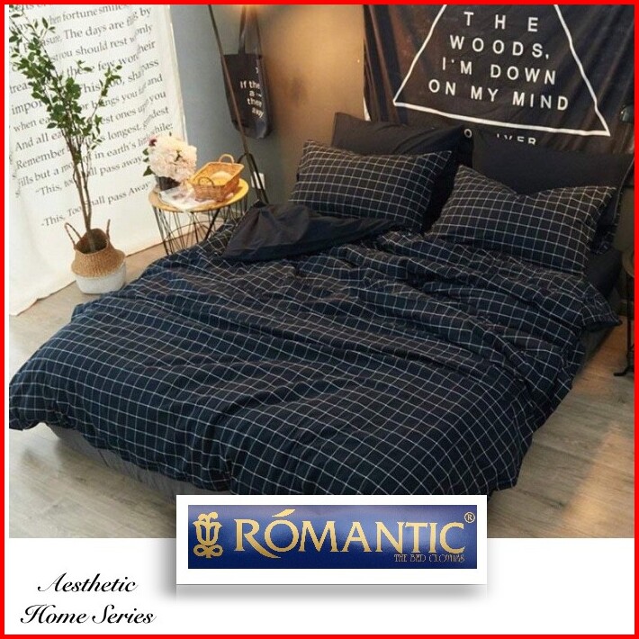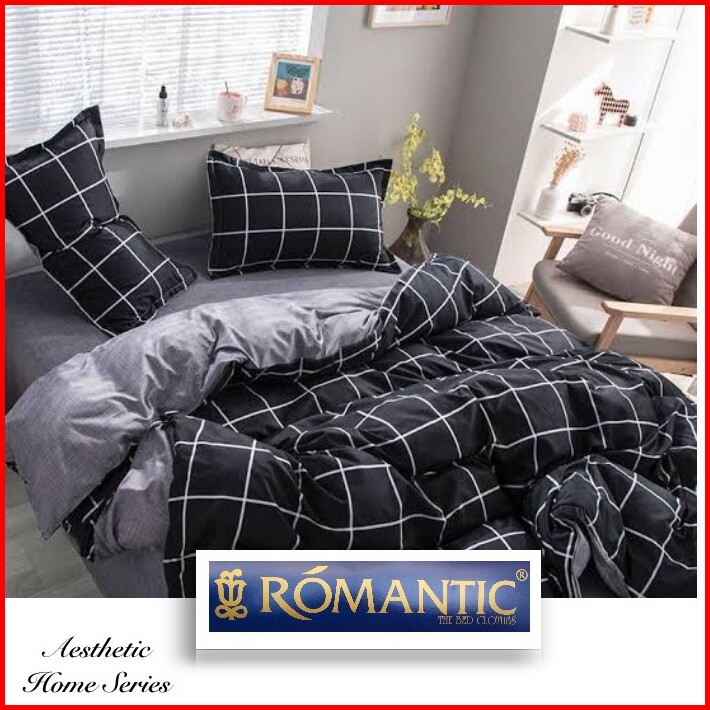 Aesthetic Korea Series Bedcover Sprei By Romantic Motif Kotak Hitam Katun Jepang Minimalis Decor
