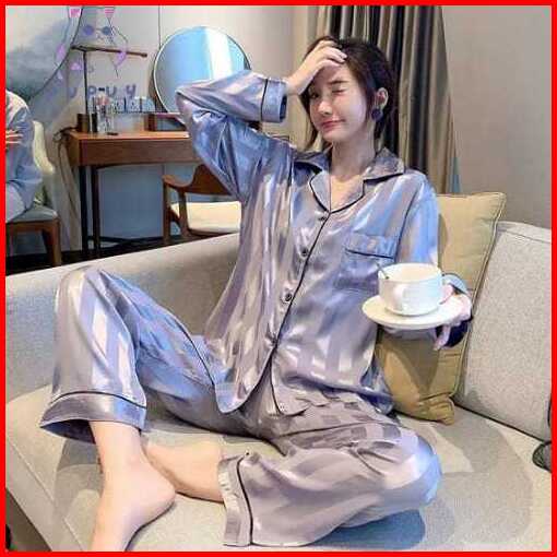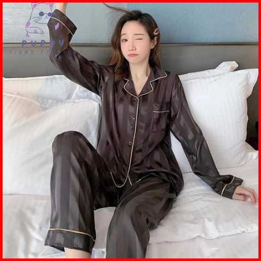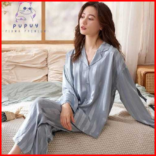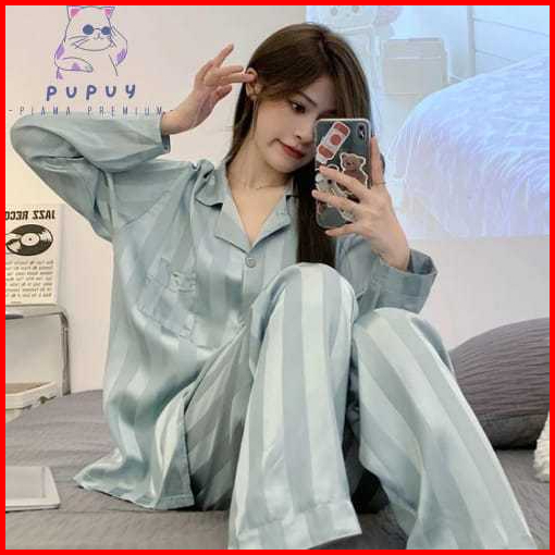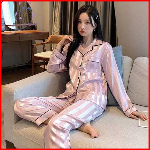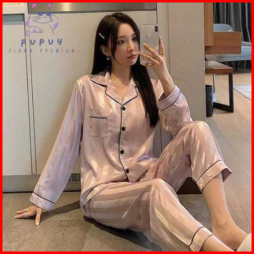 Piyama Wanita Korea Premium Pajama Remaja Kalem Lembut Polos Laurencia Satin Sutra Baju Tidur Wanita Dewasa Lengan Panja