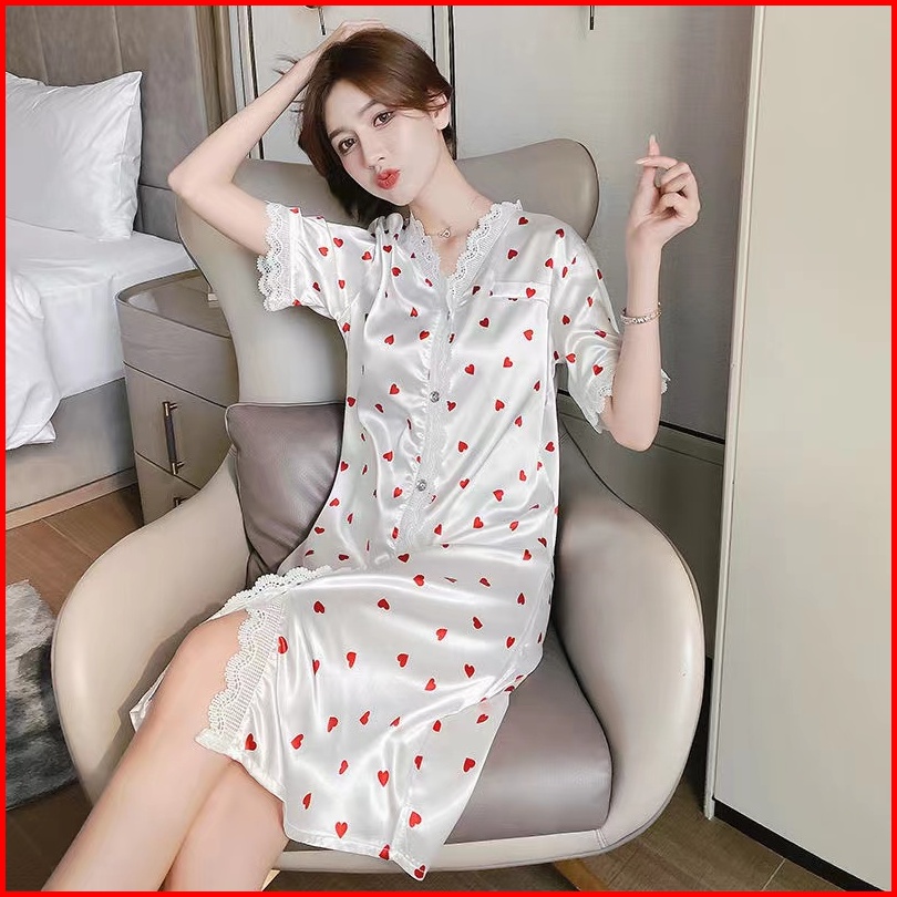 2025 Es Sutra Piyama Wanita Lengan Pendek Seksi Renda V-neck Baju Tidur Mewah Layanan Rumah Prancis Mewah