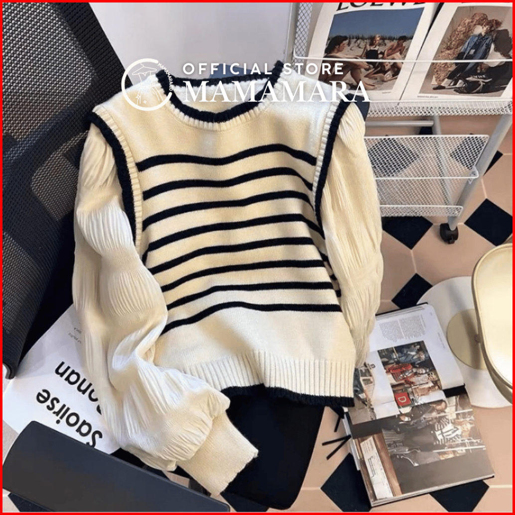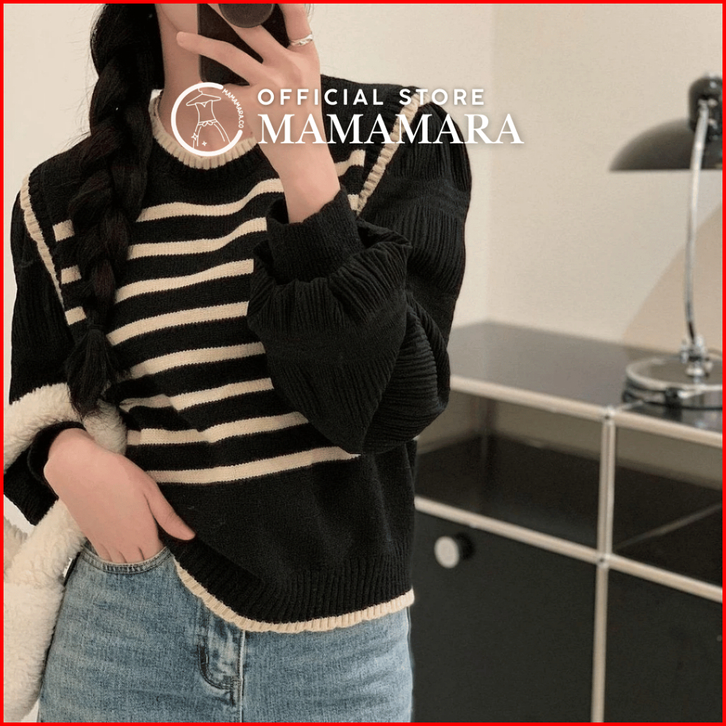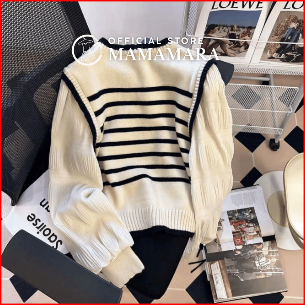 Mamamara - Cardigan Rajut Sweater Korean Santai Round Neck Setrip Putih Hitam Polos Santai Wol