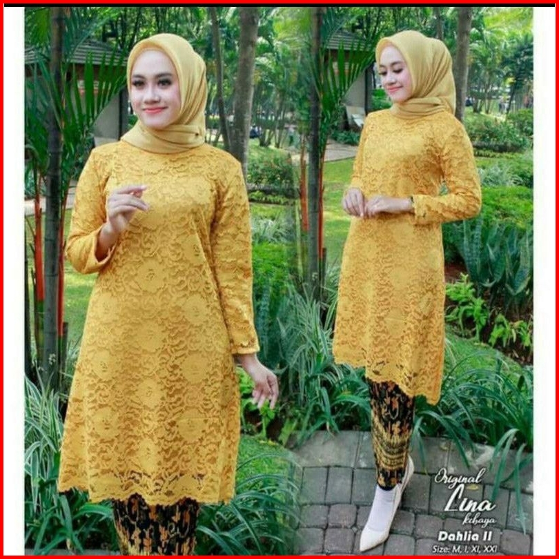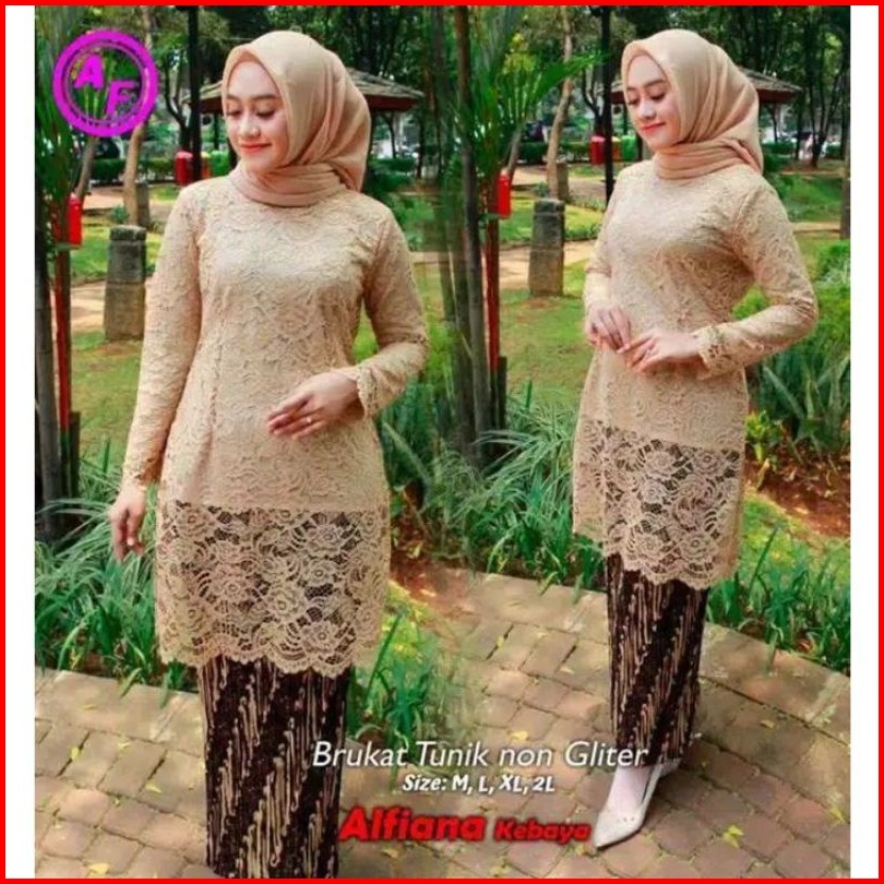 Set Kebaya Tunik Brukat Modern Wanita Muslim Pesta Brukat