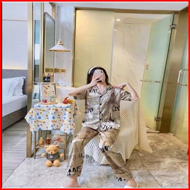 2024 Piyama Wanita Sutra Sutra Es Rumah Mewah Baru Yang Mengenakan Set Celana Panjang Lengan Pendek