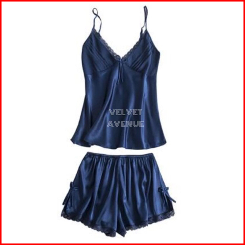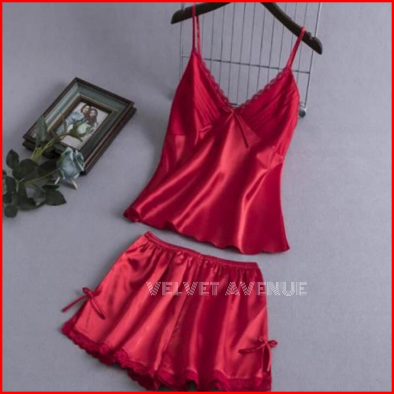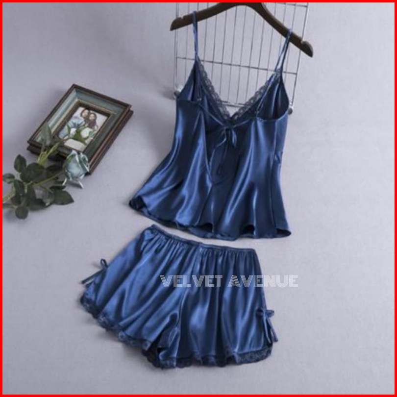 Piyama Baju Tidur Camisole Wanita Setelan Silk Satin 893 Import
