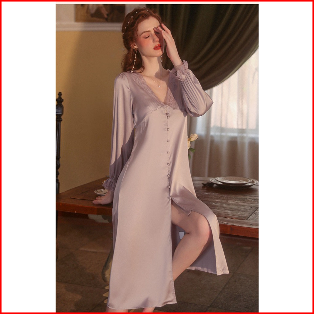 Vee-baju Tidur Silk 78108 Lengan Panjang France Style Seserahan Baju Tidur