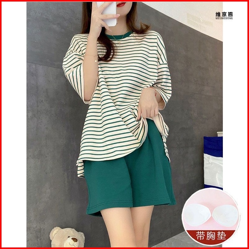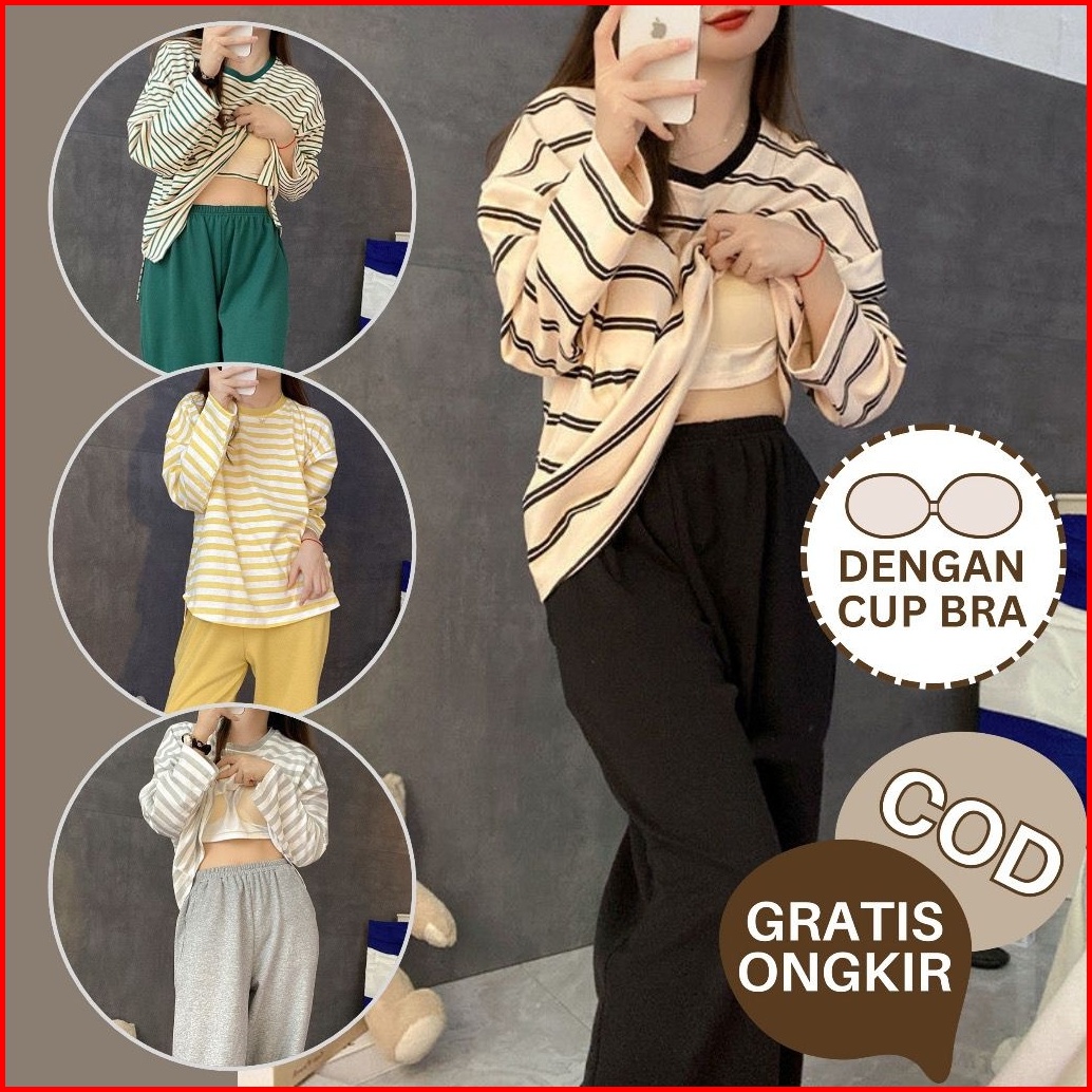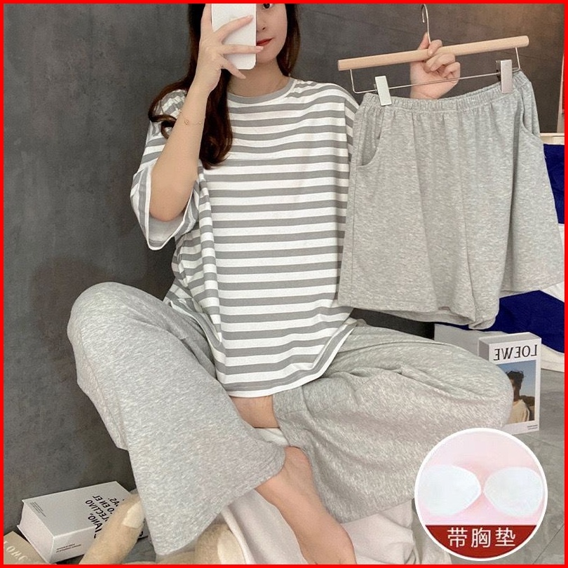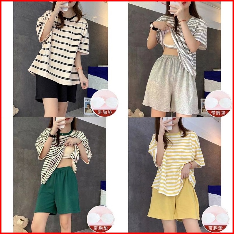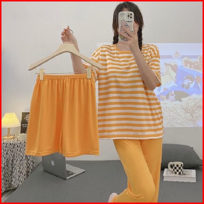 Ss 118 Baju Tidur 3in1 Dengan Busa Cup Piyama Import Wanita Baju Rumah 1 Set Lengan Pendek Celana Pendek Panjang