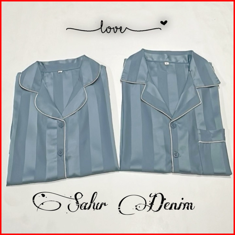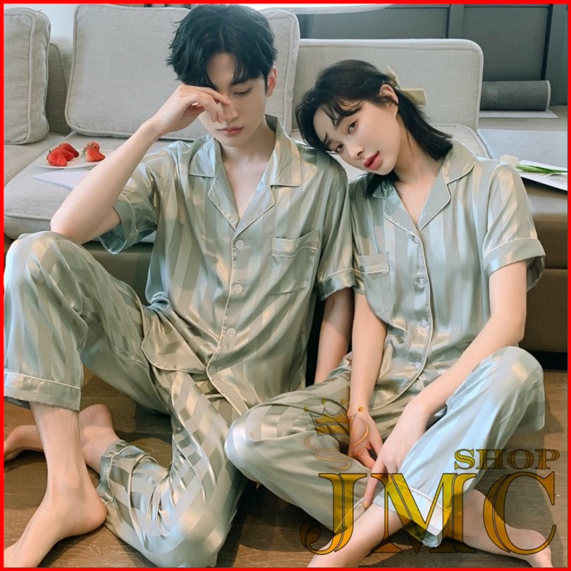Paket 2pcs Cp Couple Salur Dan Kotak2 Satin Bajutidur Piyama Wanita Dan Pria