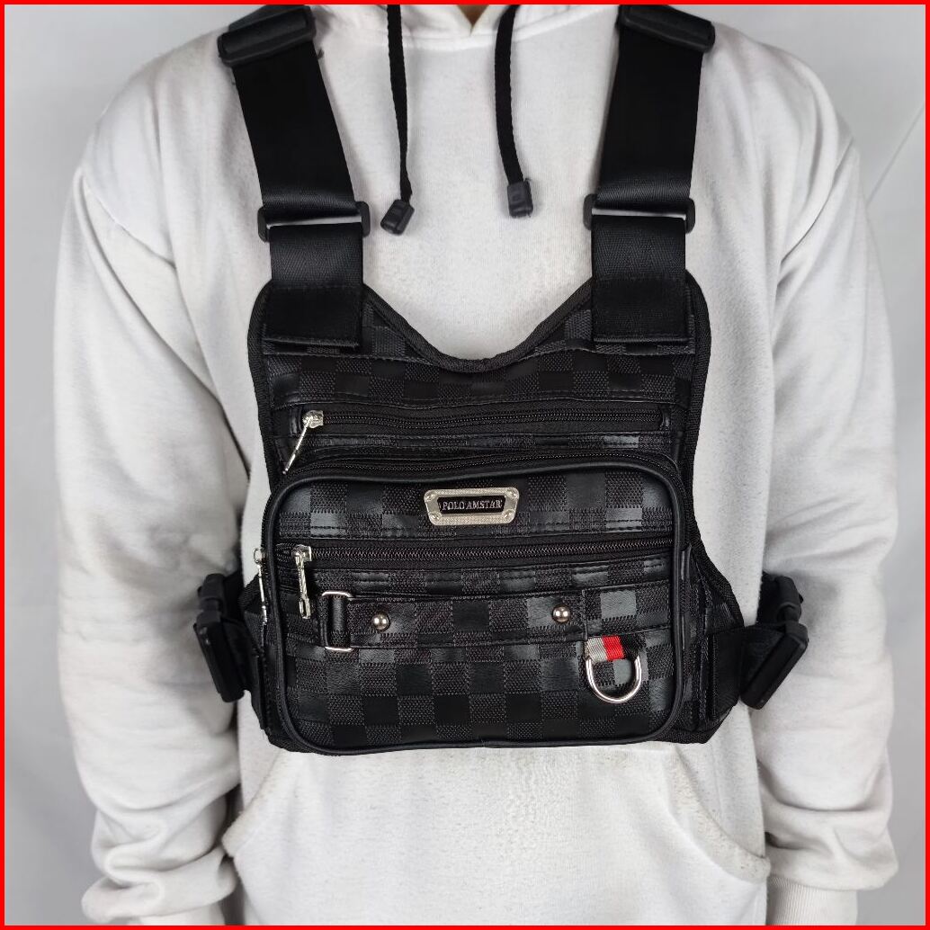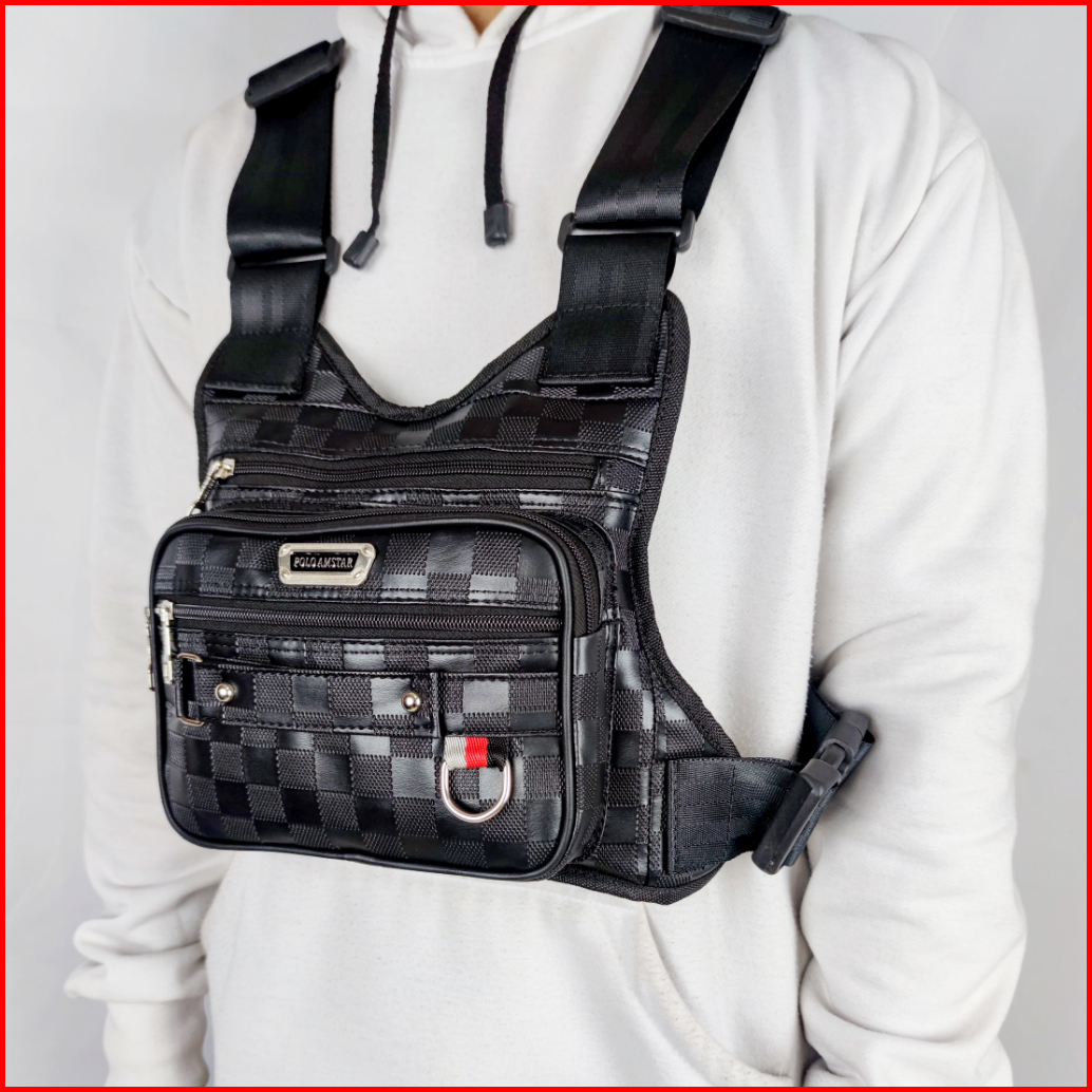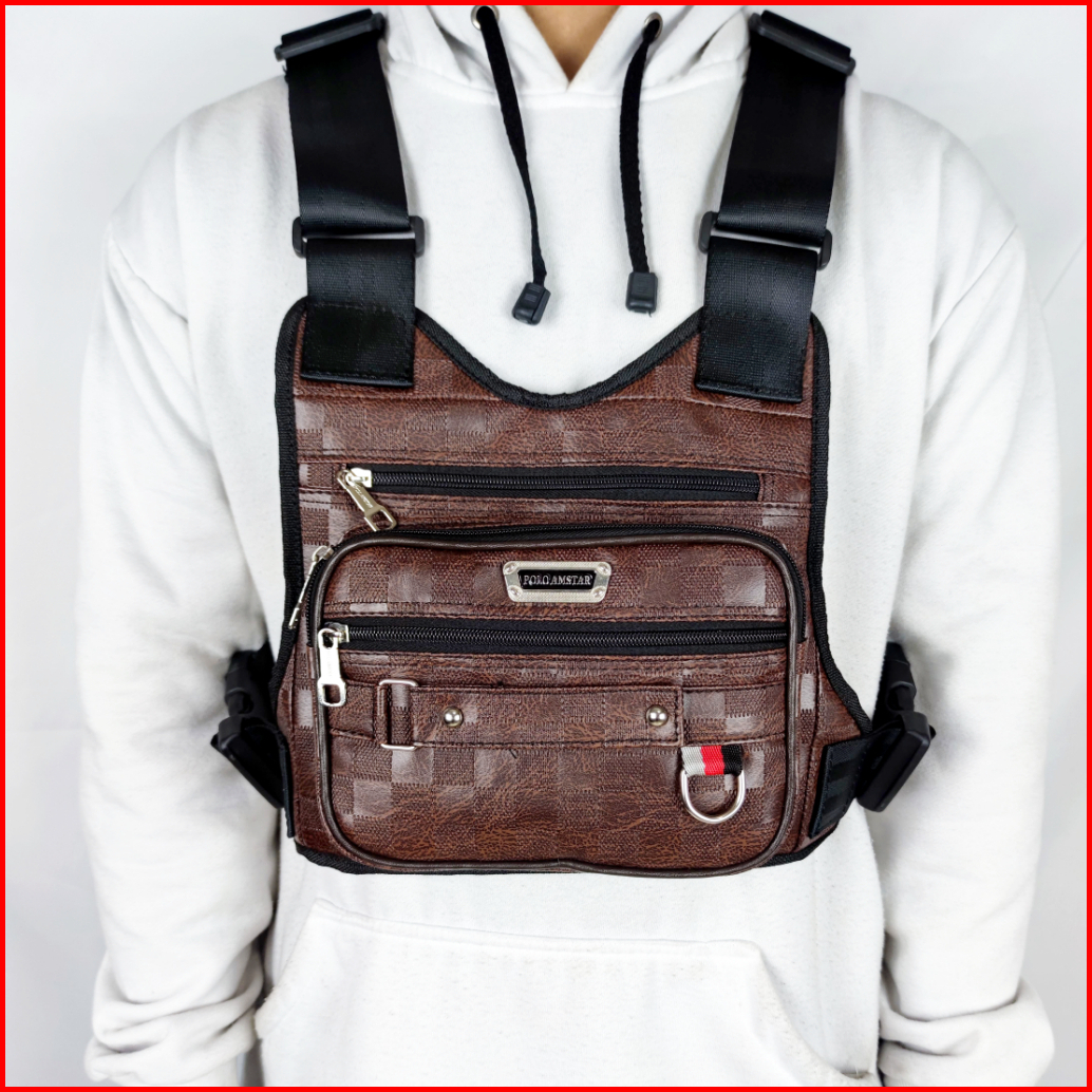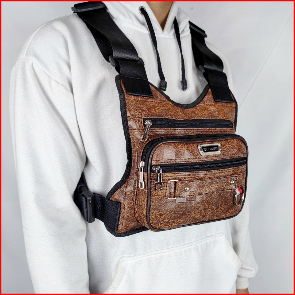 Polo Amstar - Tas Selempang Dada Bahan Kulit Pu Chest Bag Tas Rompi