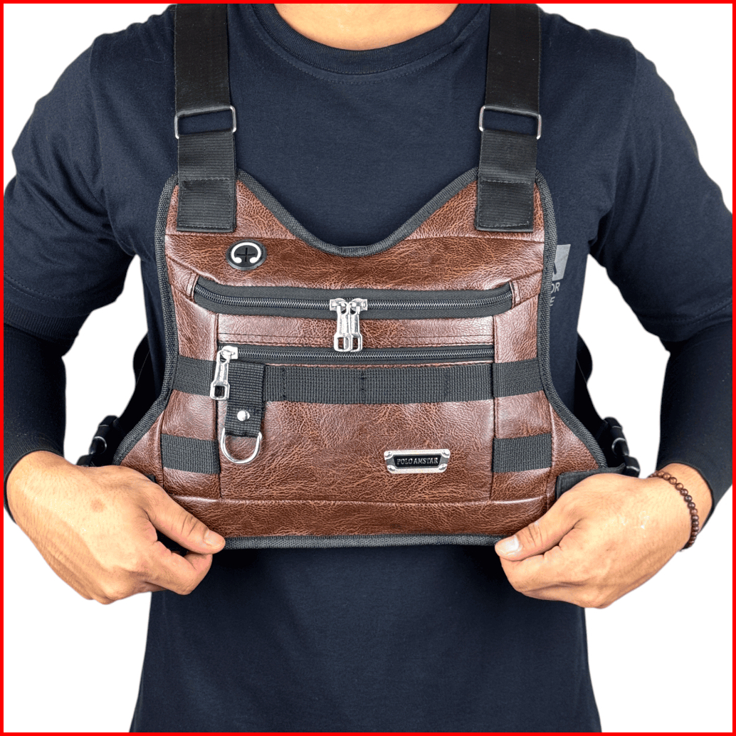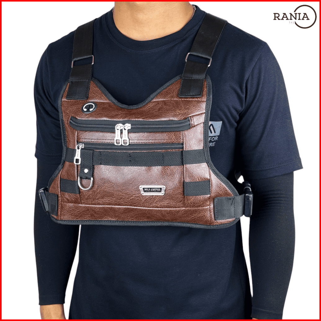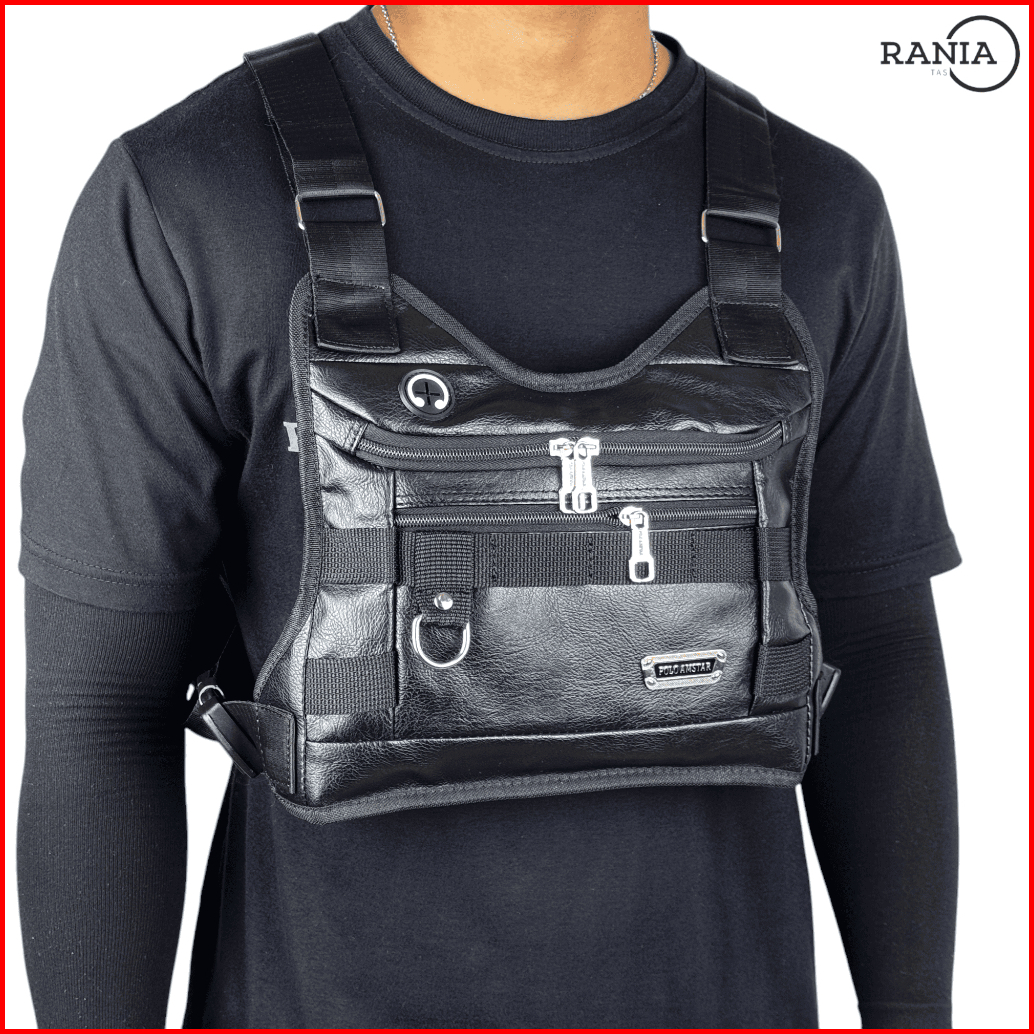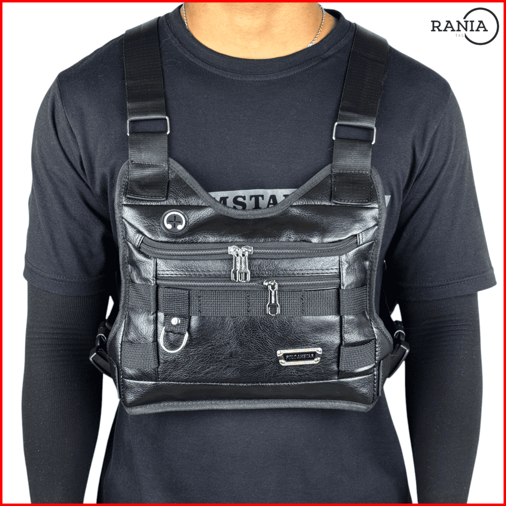 Chest Bag Kulit Pu Leather Chest Rig Bag Tas Selempang Dada Polo Amstar