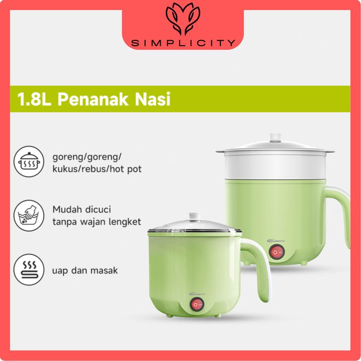 Panci Listrik Serbaguna 1.8L/Magic com Mini Rice Cooker Mini / Touch control / Electric Cooker Travel Portable