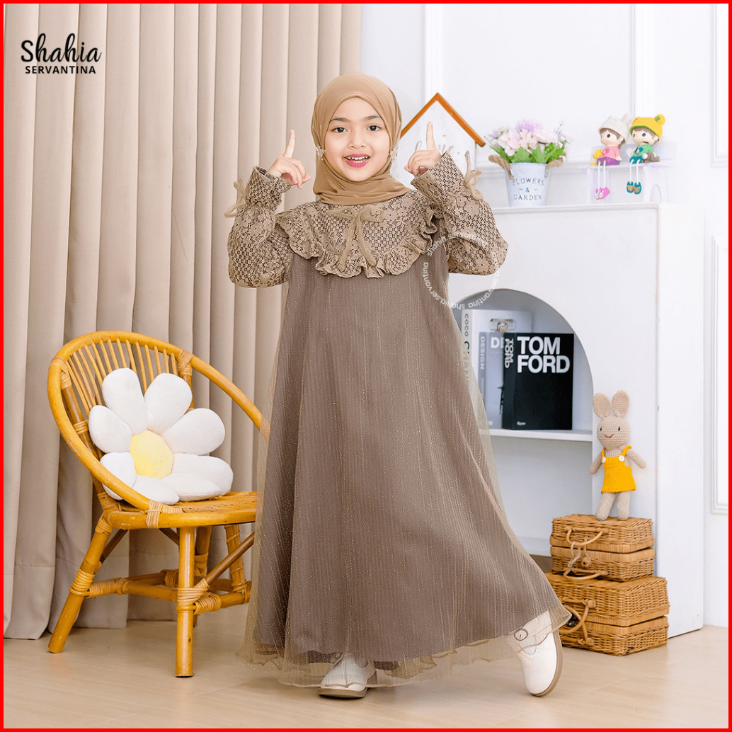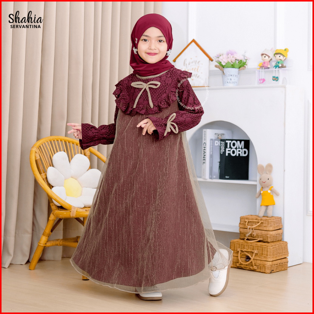 Shahia Servantina - Labrina Dress Couple Lace Tille Gamis Pesta Anak Perempuan