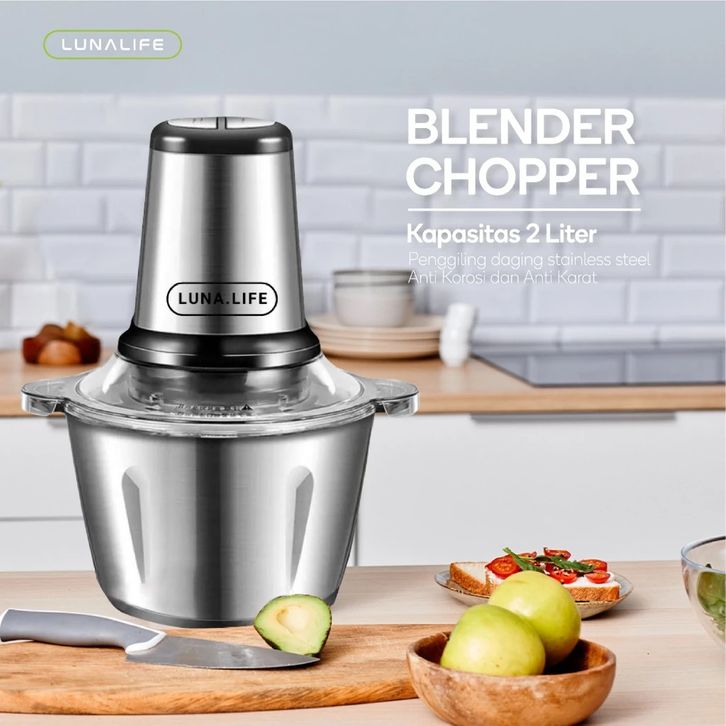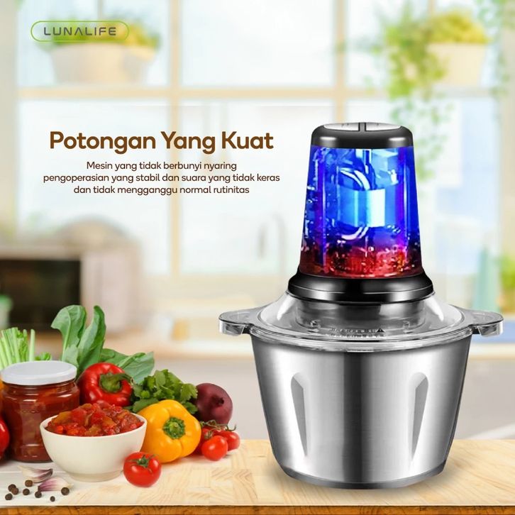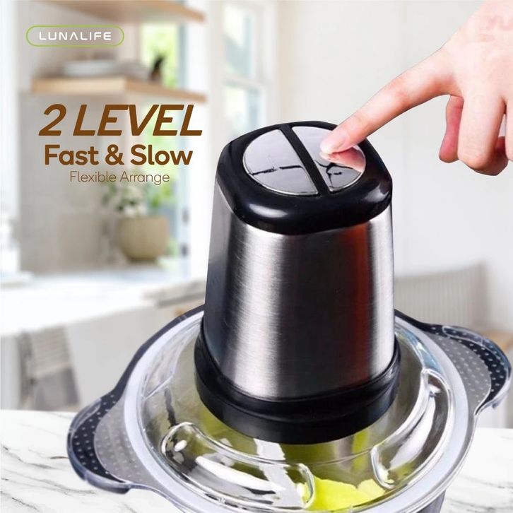 LUNALIFE FOOD CHOPPER 2L STAINLESS 250WATT PENGGILING DAGING MULTIFUNGSI PISAU SUDAH DIRAKIT