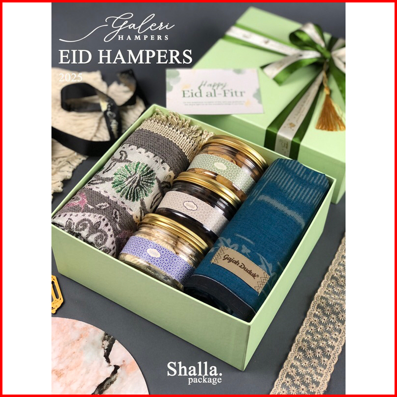 Shalla Package Hampers Hari Raya Lebaran Sejadah Hijab Sarung Premium Cookies