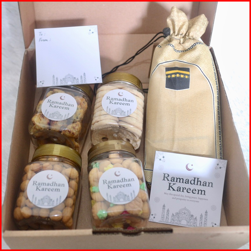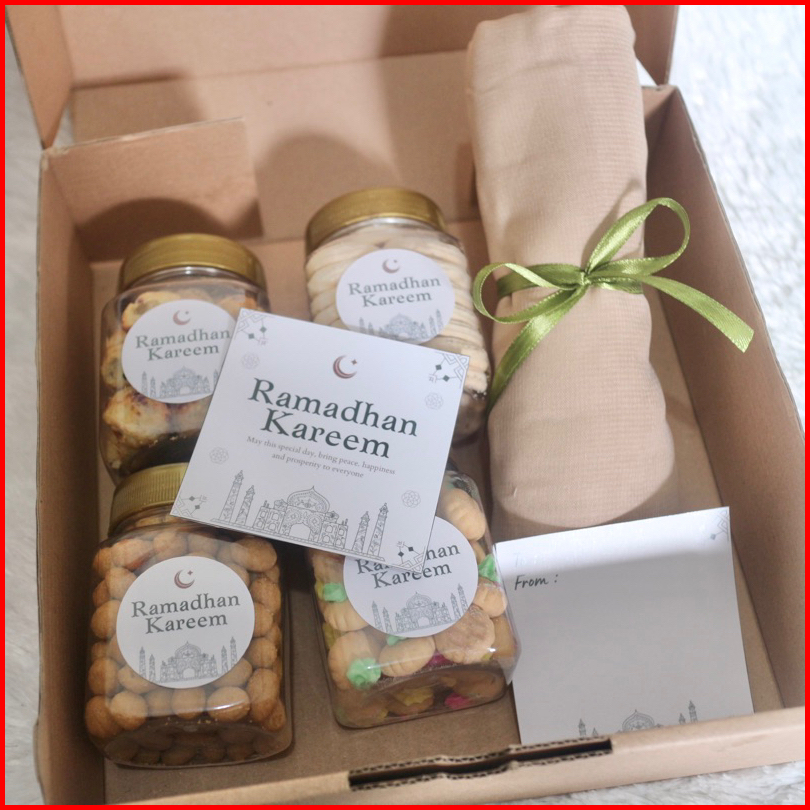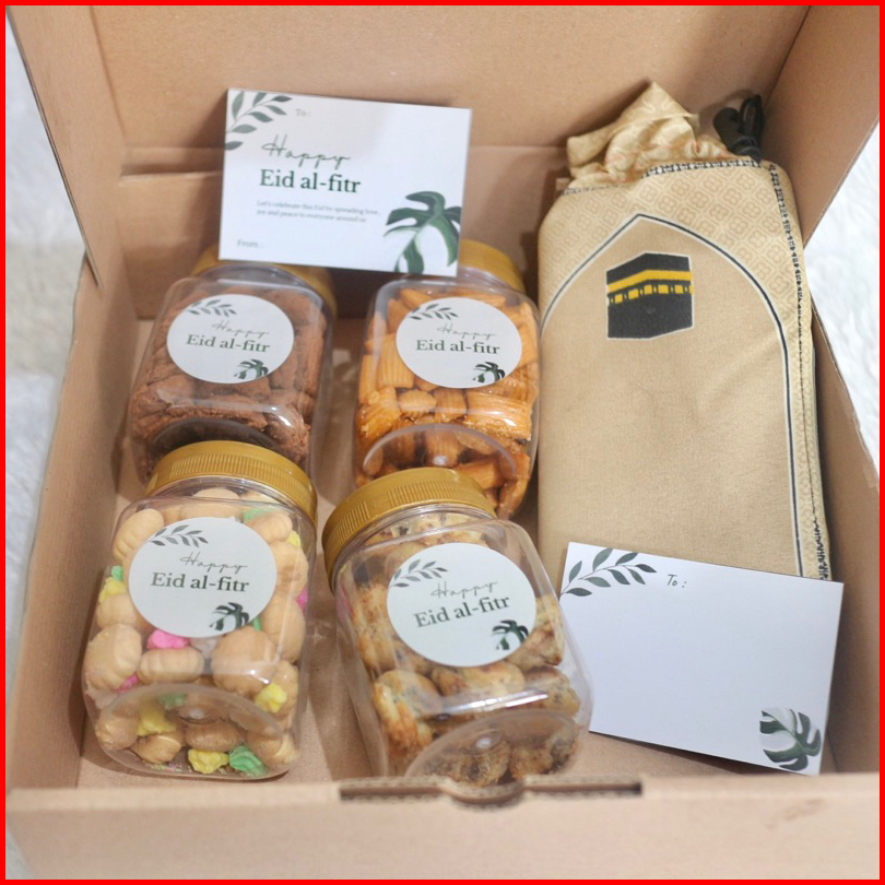 Hampers Kue Kering Cookies Idul Fitri Lebaran Hijab Sajadah Parcel Gift Box Hadiah Kado Bingkisan Birthday Graduation