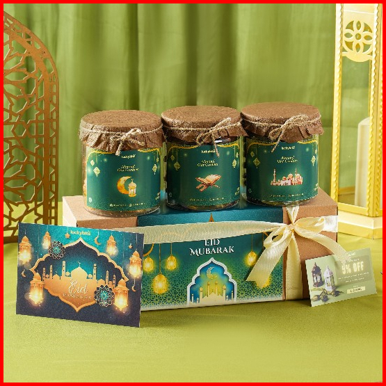 Hampers Lebaran Idul Fitri Parcel Lebaran Ramadhan Eid Hampers - Cookies 3 Jar Kartu Pita Luckybite