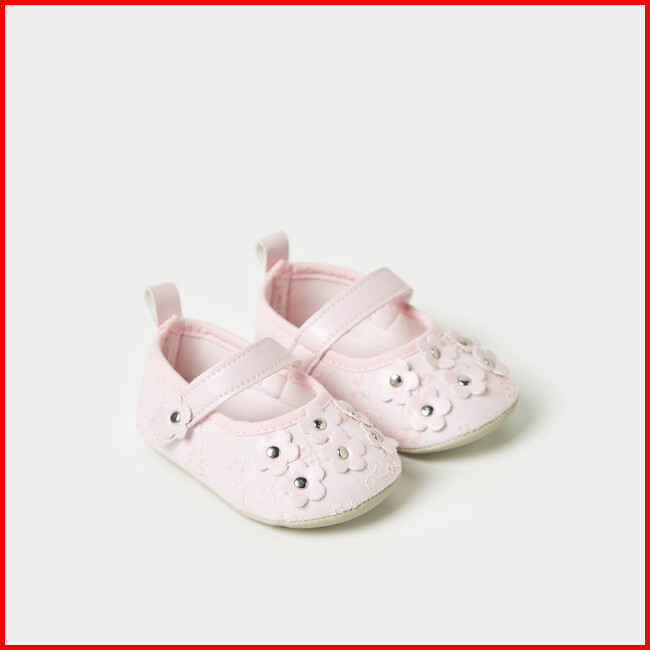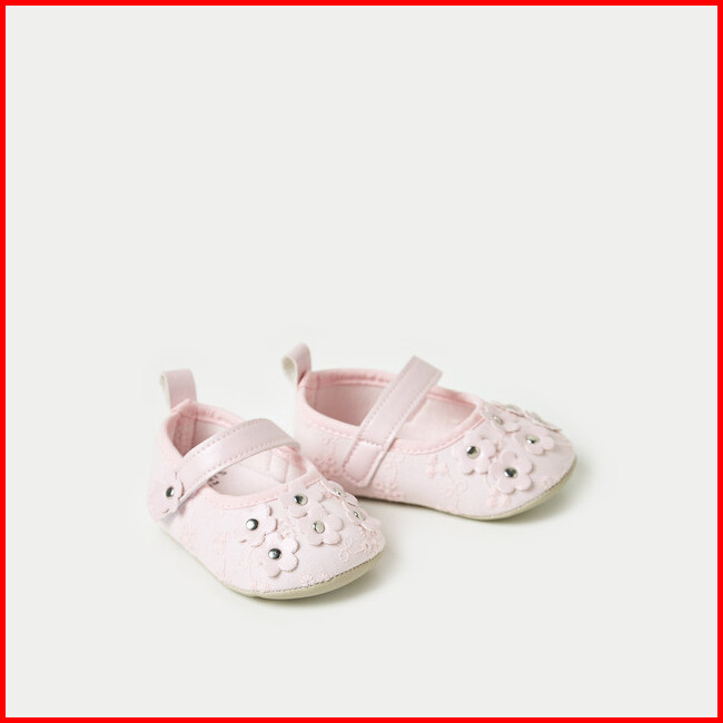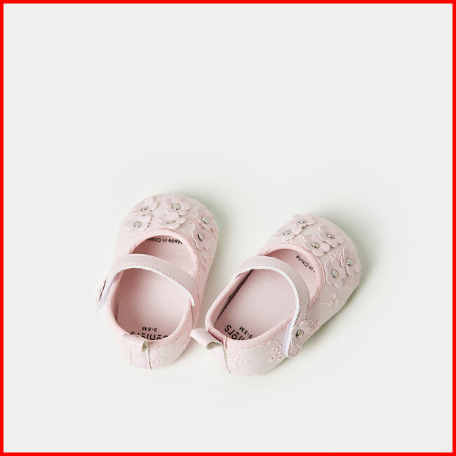 Babyshop Juniors Floral Embellished Booties With Hook And Loop Closure