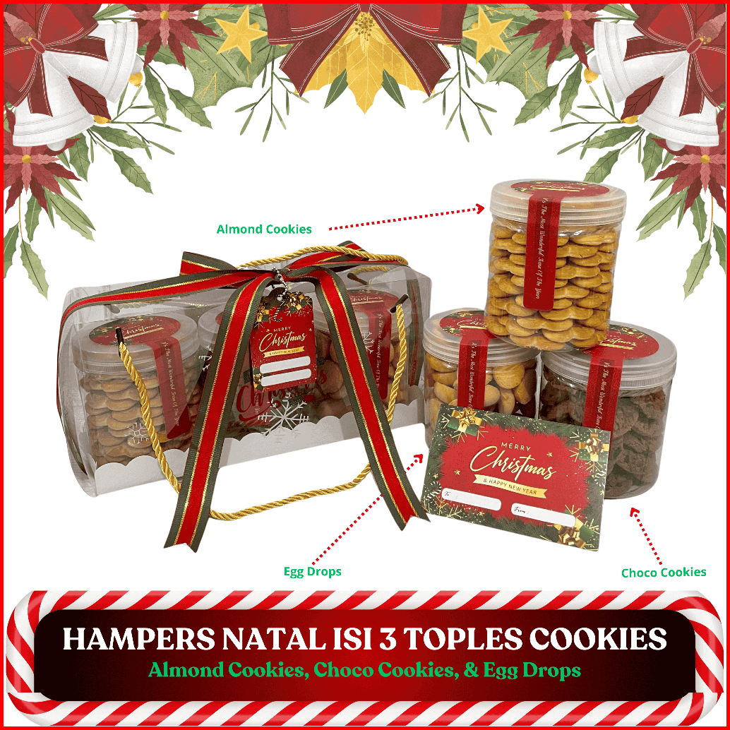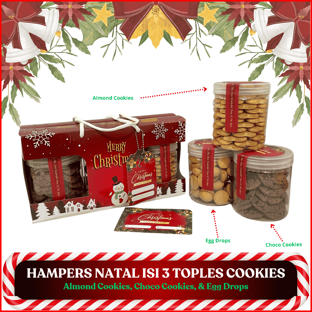 Ready Stock Hampers Natalparcel Thr Prremium Kado Hampers Isi 3 Jar Besar Spesial Cookies Chocolate Almond Cookies Dan E