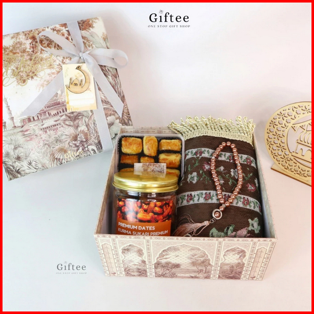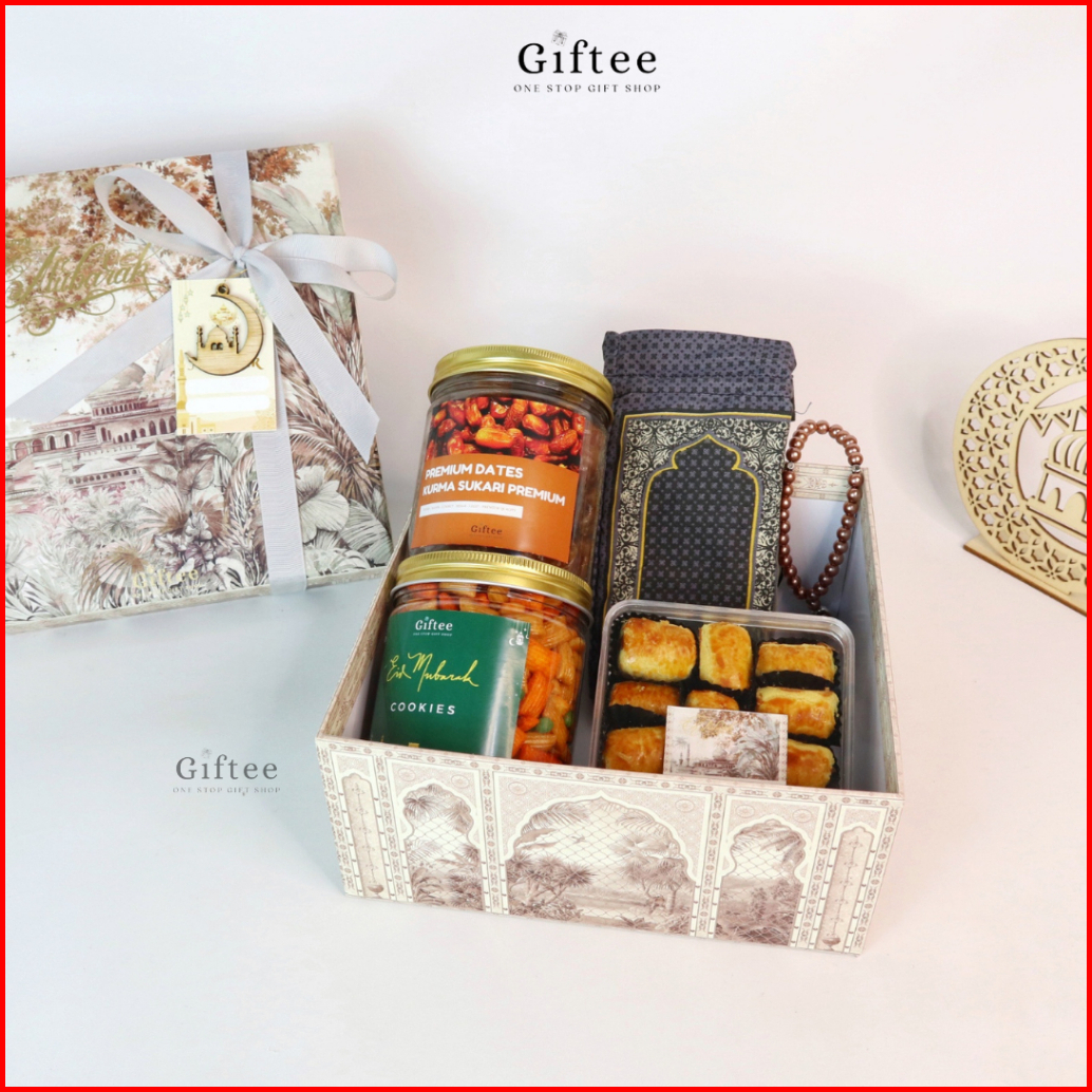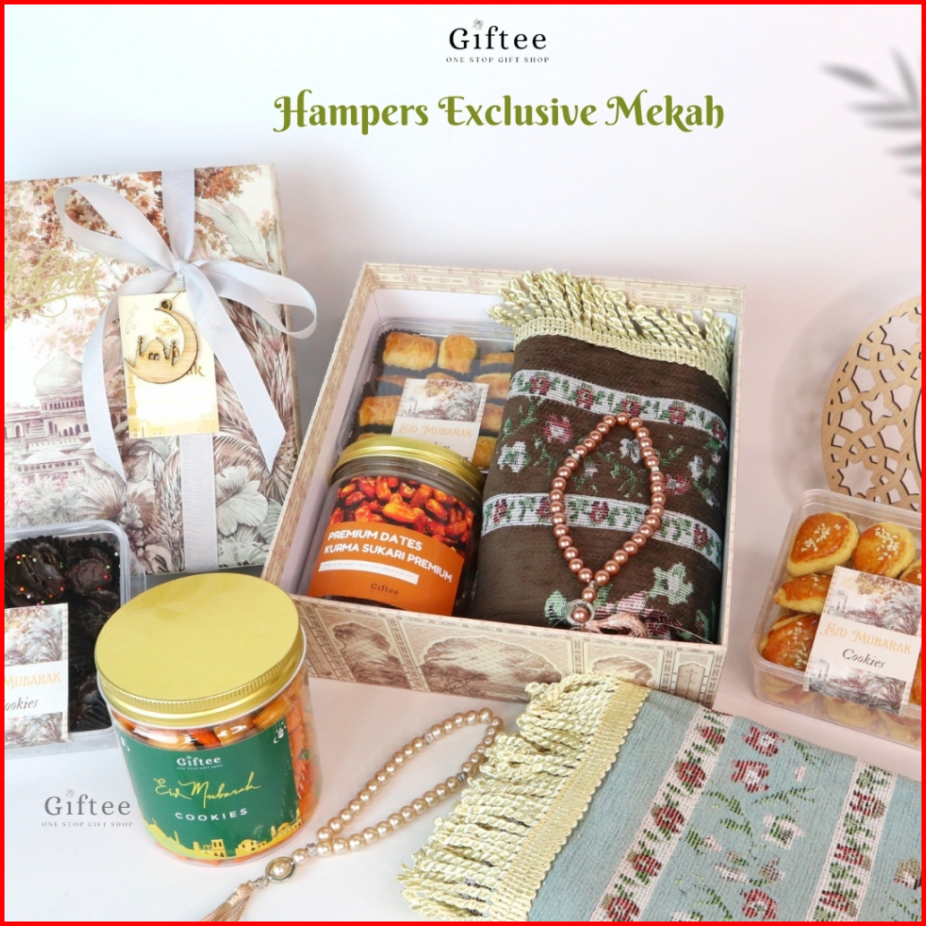 Hampers Mekah Lebaran Exclusive Hard Box Isi Kue Kering Sajadah Cookies Sajada Snacks Snack Kurma Tasbih Mutiara Premium