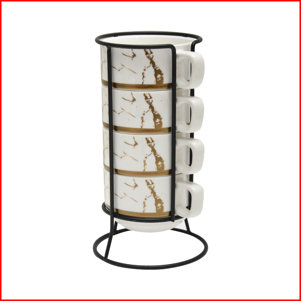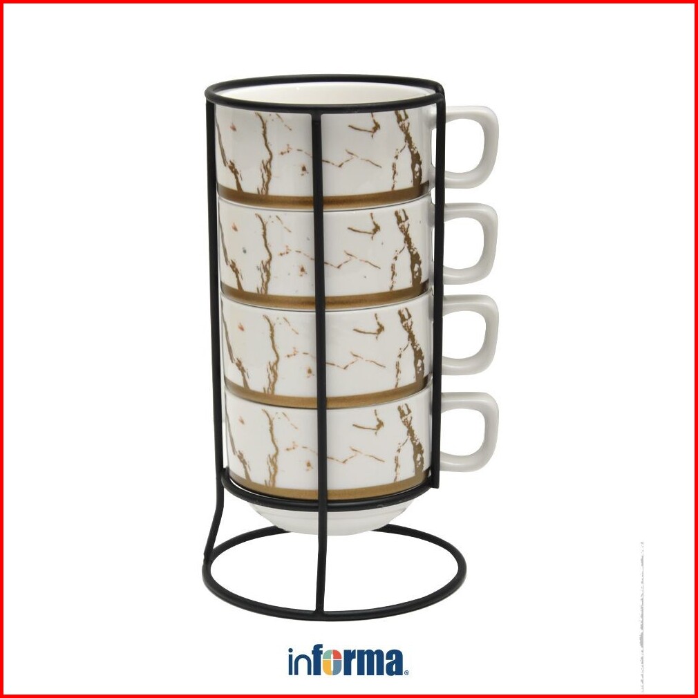 Informa Appetite 200 Ml Set 4 Pcs Mug Stackable Dengan Rak Marble Gelas Dengan Handle Cup Wadah Minuman Perlengkapan Dap
