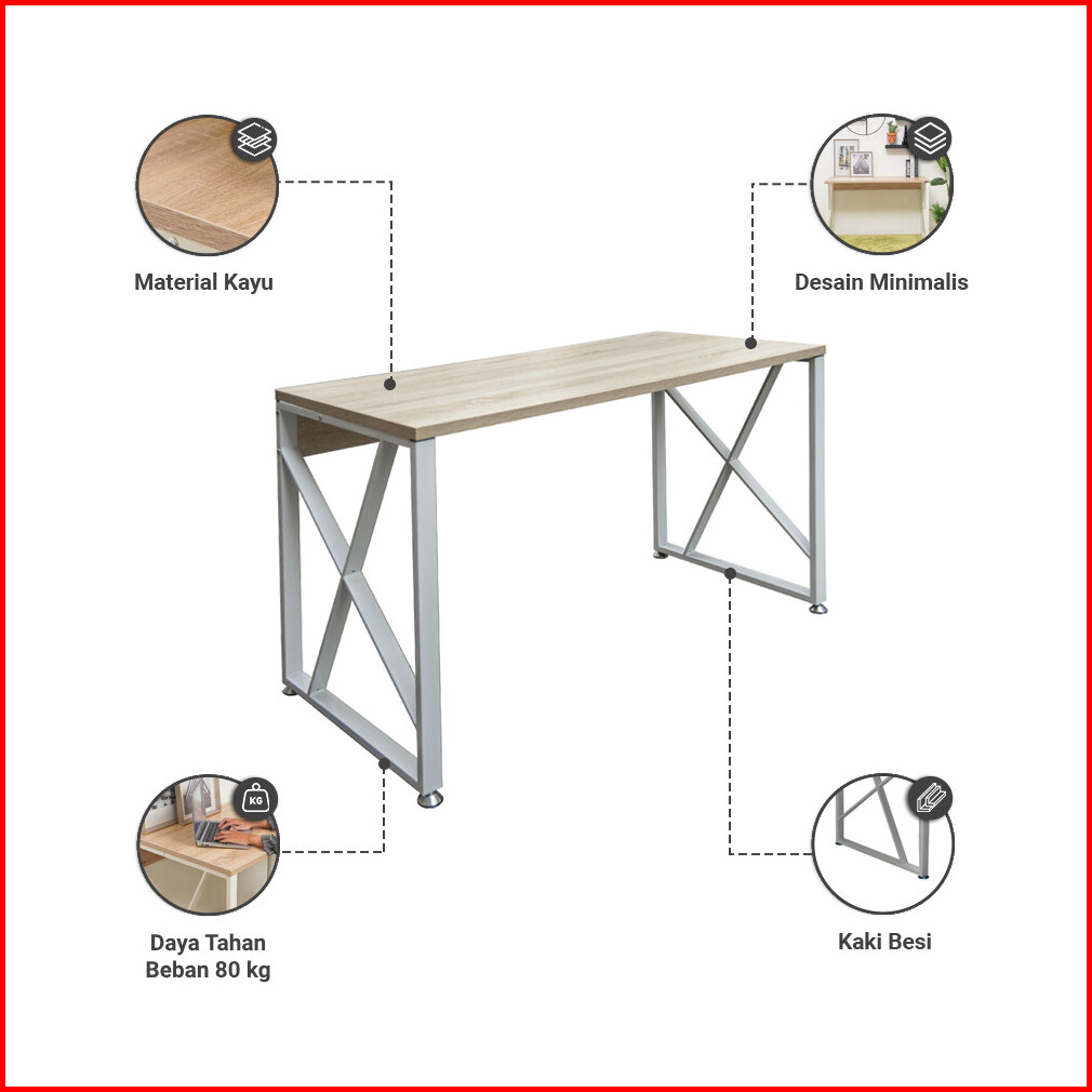 Informa Lexee Meja Kantor - Cokelat Oak Putih Office Table Furnitur Kantor Meja Kerja Belajar Serbaguna