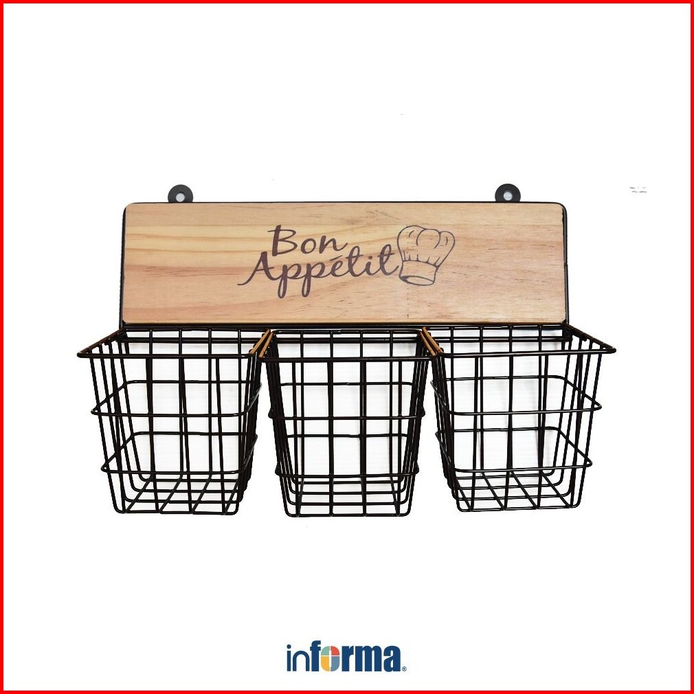 Informa Revyn Rak Gantung Dapur 3 Kompartemen - Cokelat Organizer Penyimpanan Toples Bumbu Serbaguna Spices Rack Tempat