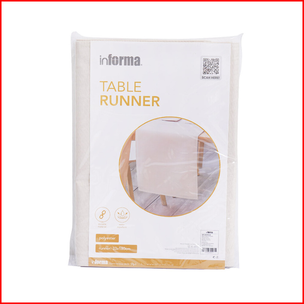 Informa 33x180 Cm Table Runner Water Repelent - Krem Beige Taplak Meja Tengah Serbaguna Dekorasi Ruang Makan Ruang Tamu