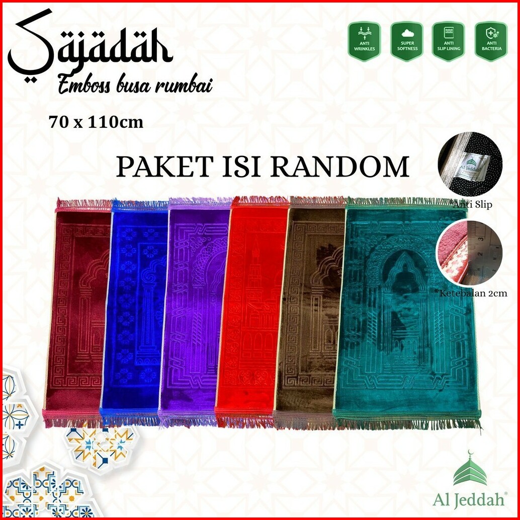 Sajadah Emboss Aljeddah Tebal Busa 70x110 Premium Rumbai Polos
