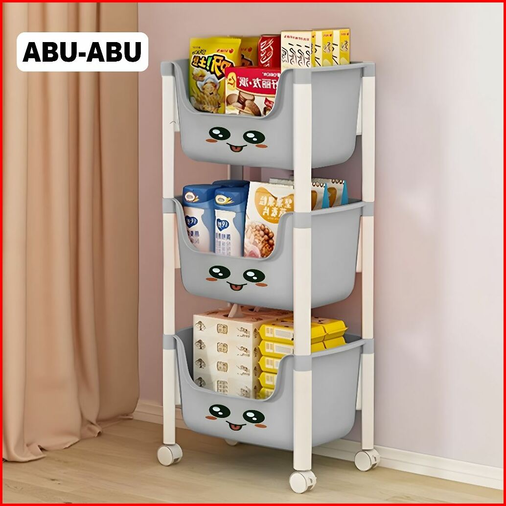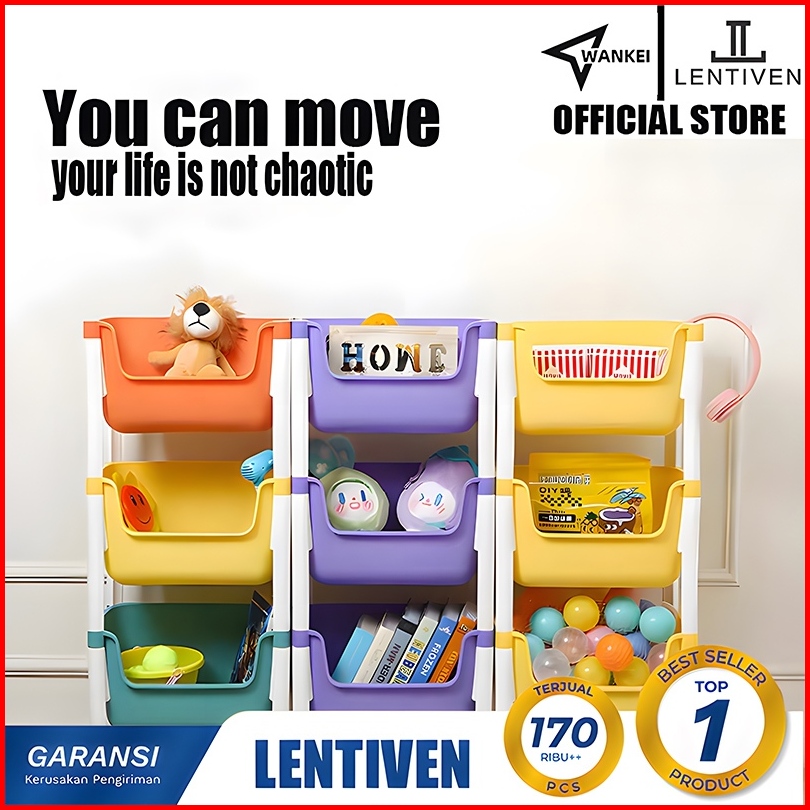 Wankei Lentiven Rak Susun Penyimpanan Terbuka Serbaguna Rak Trolley Susun Dengan Roda Rak Buku Tebal Plastik Toy Storage