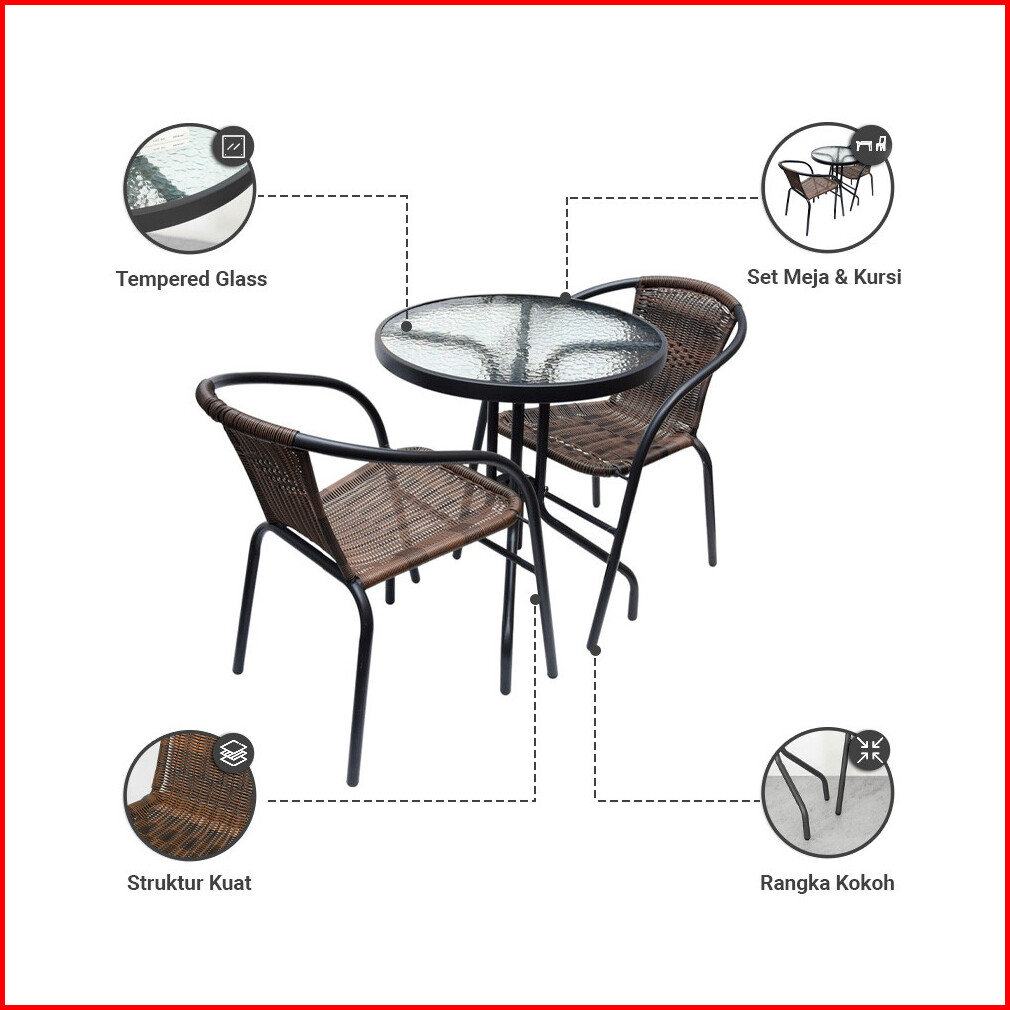 Informa Colorado Set Kursi Meja Teras - Cokelat Balcony Table Chair Furniture Outdoor Serbaguna Furnitur Rumah Tempat Du